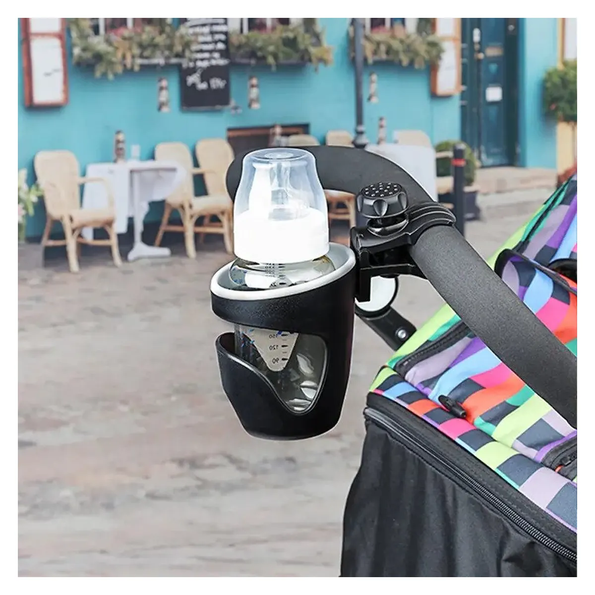 • Acest suport pentru pahare se ataseaza cu usurinta la carucior.