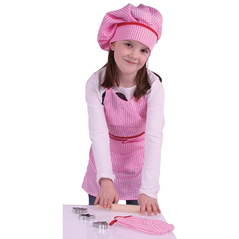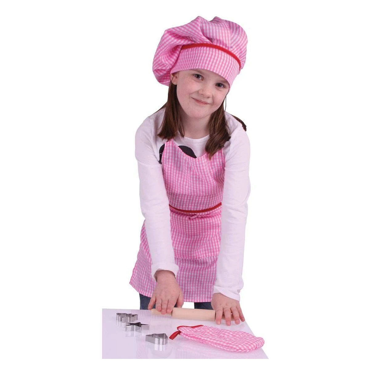 Sortuletul cu patratele, boneta de bucatar asortata si manusa de bucatarie le vor incanta cu siguranta pe fetite si vor starni interesul pentru activitatile din bucatarie.