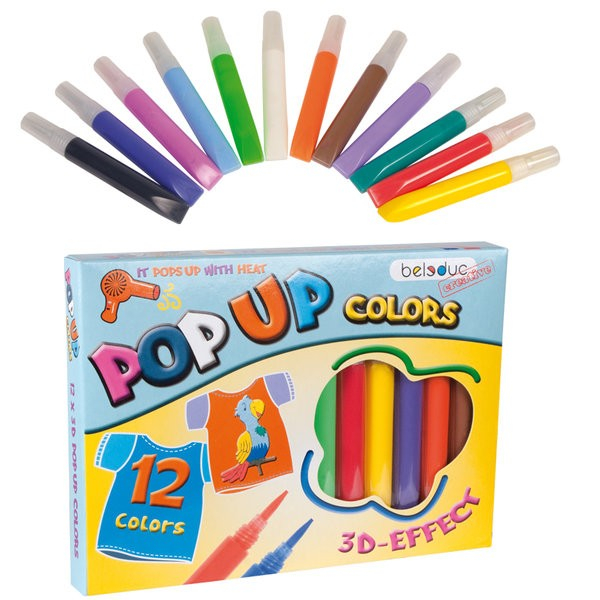 Beleduc Culori cu efect 3D, pentru pictat teasaturi, canvas, sticla, hartie, lemn, 12 culori, Beleduc