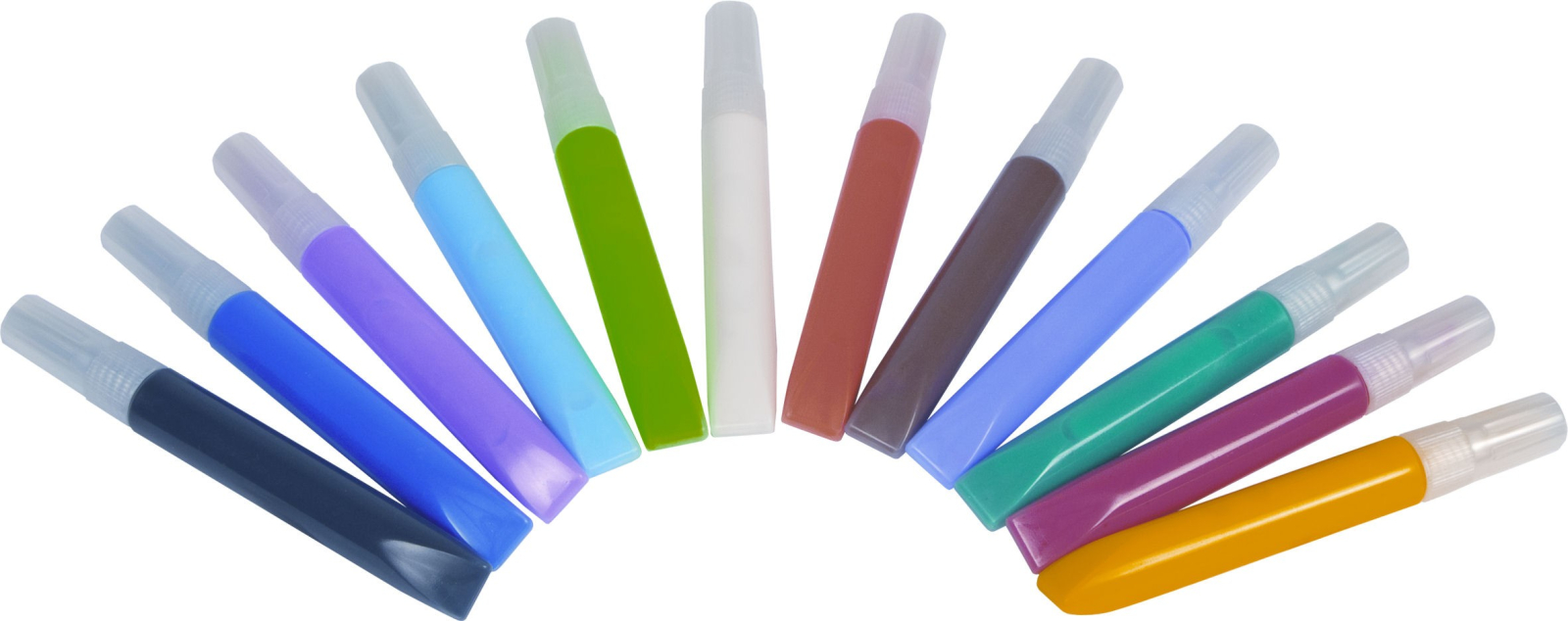 Set de 12 culori pentru pictat teasaturi, canvas, sticla, hartie, lemn si alte materiale.