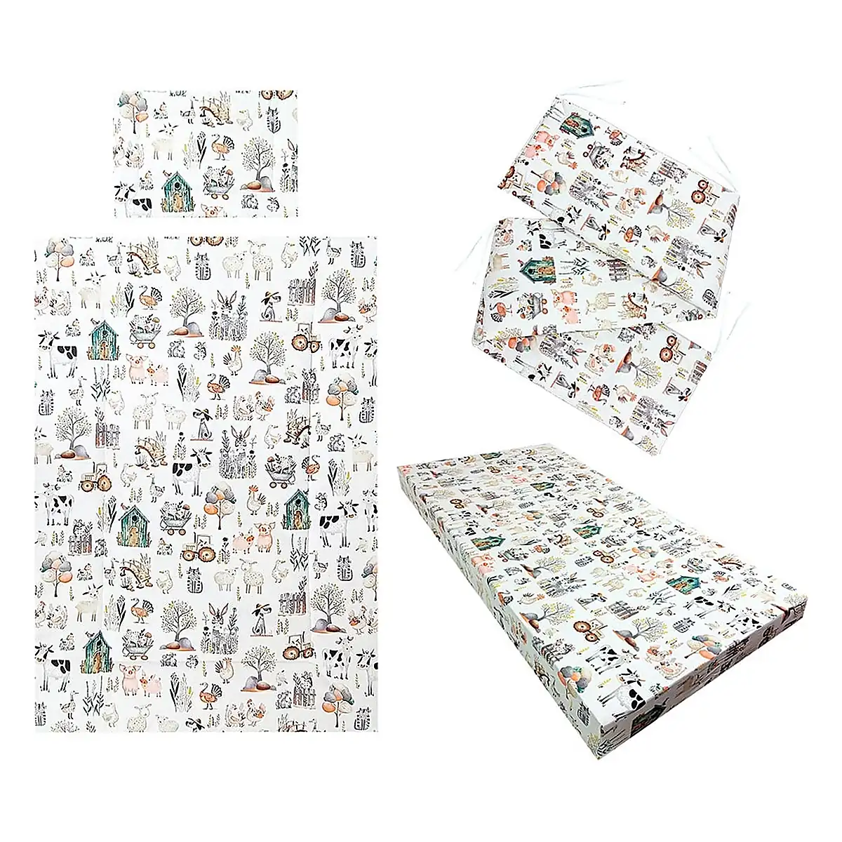 Lenjerie patut Fermier, 4 piese, Alb