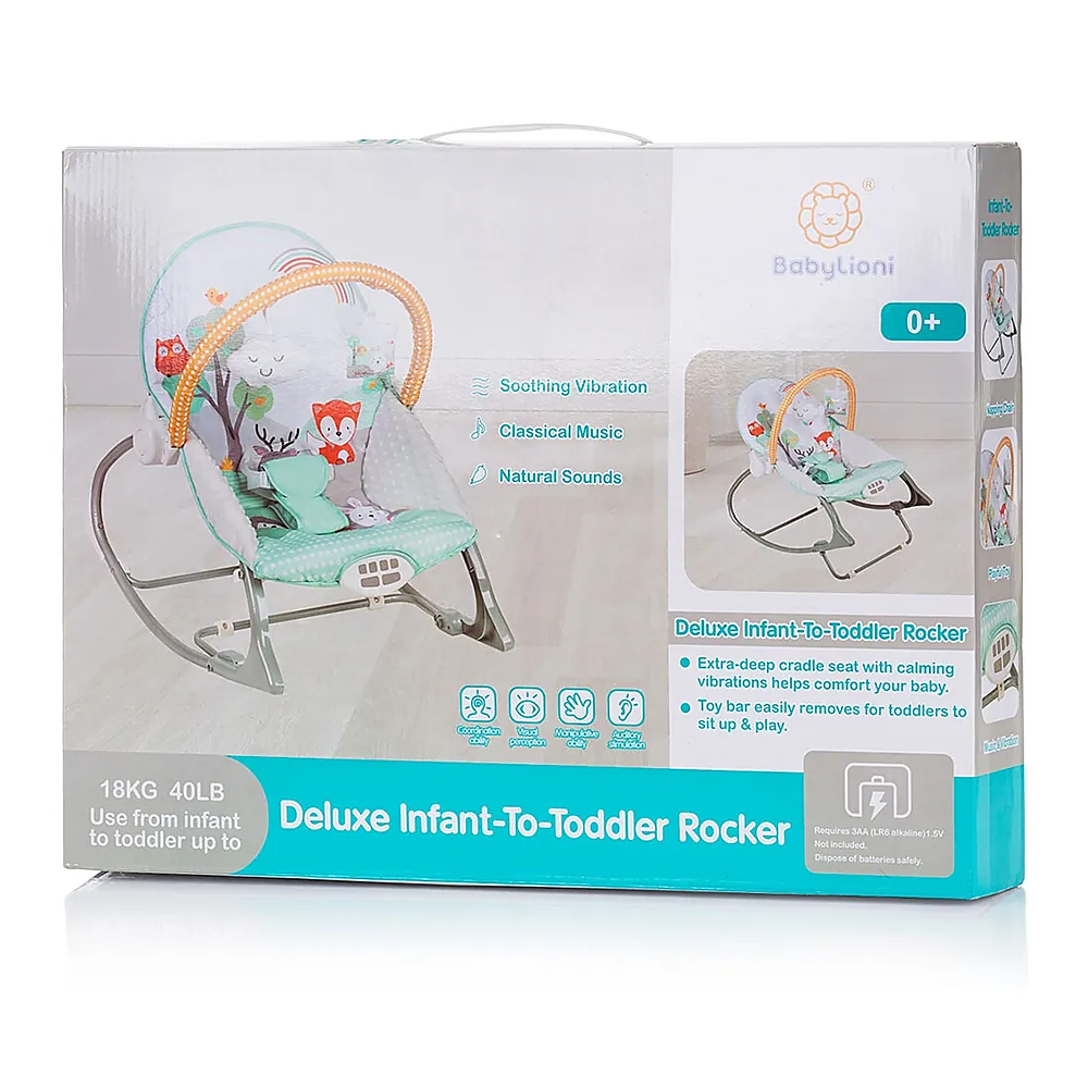 - Modul de vibrații calmante și melodii, ideal pentru a liniști copilul.