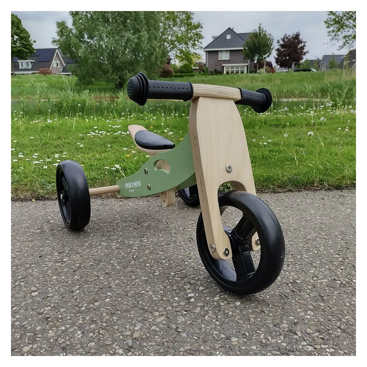 Bicicleta/tricicleta fara pedale, Free2Move, Din lemn, 2 in 1, Functie de bicicleta echilibru, 1-3 ani, Mint