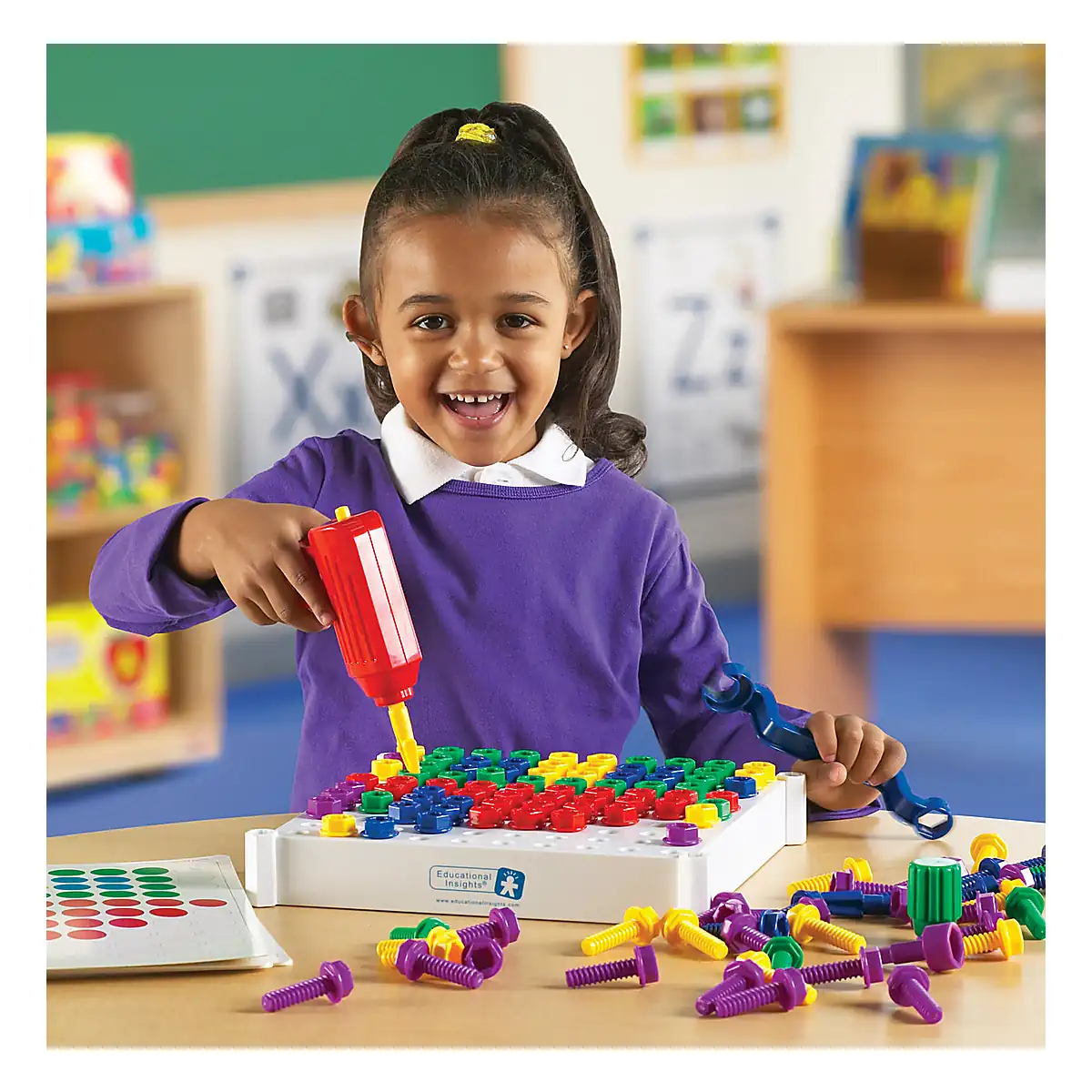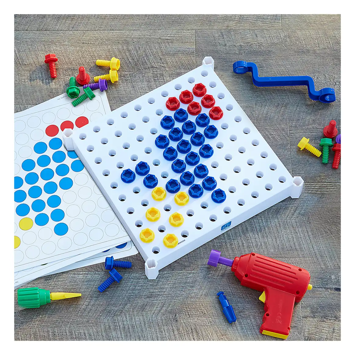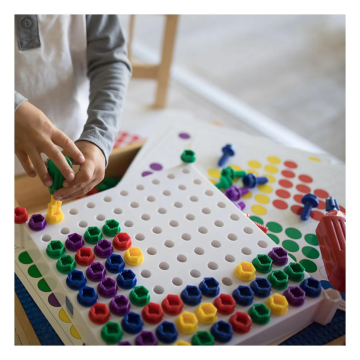 Creativitatea si construitul se impletesc perfect in acest set care stimuleaza micutii sa realizeze modele colorate si ingenioase pe tabla de joc.