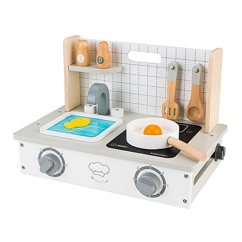 Mini bucataria reflecta perfect caracterul unei adevarate bucatarii. Detaliile bine alese fac ca copilul sa se joace cu ea ore intregi. Butoanele emit un sunet de 'click' dinstinct, care adauga realism experietei de gatit.