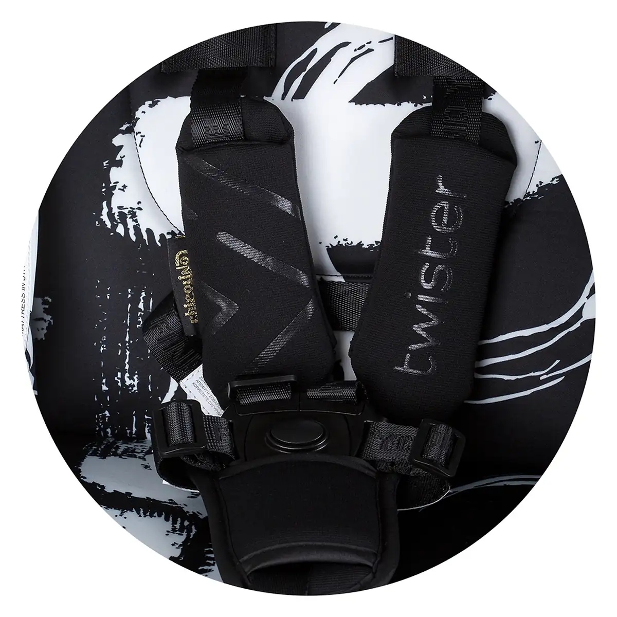 • Centura de siguranta cu sistem de prindere in 5 puncte, cu bureti pentru umeri