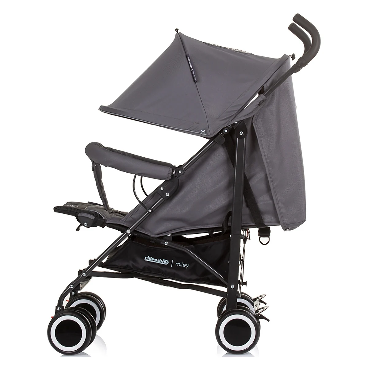 Caruciorul sport Chipolino Miley Granite combina designul practic cu siguranta pentru copii intre 6 luni si 15 kg.