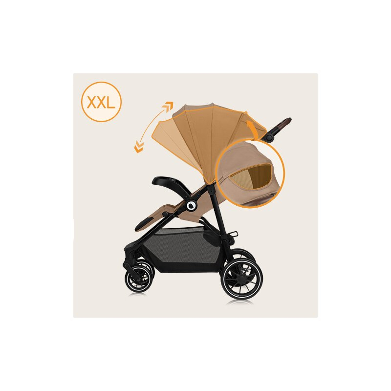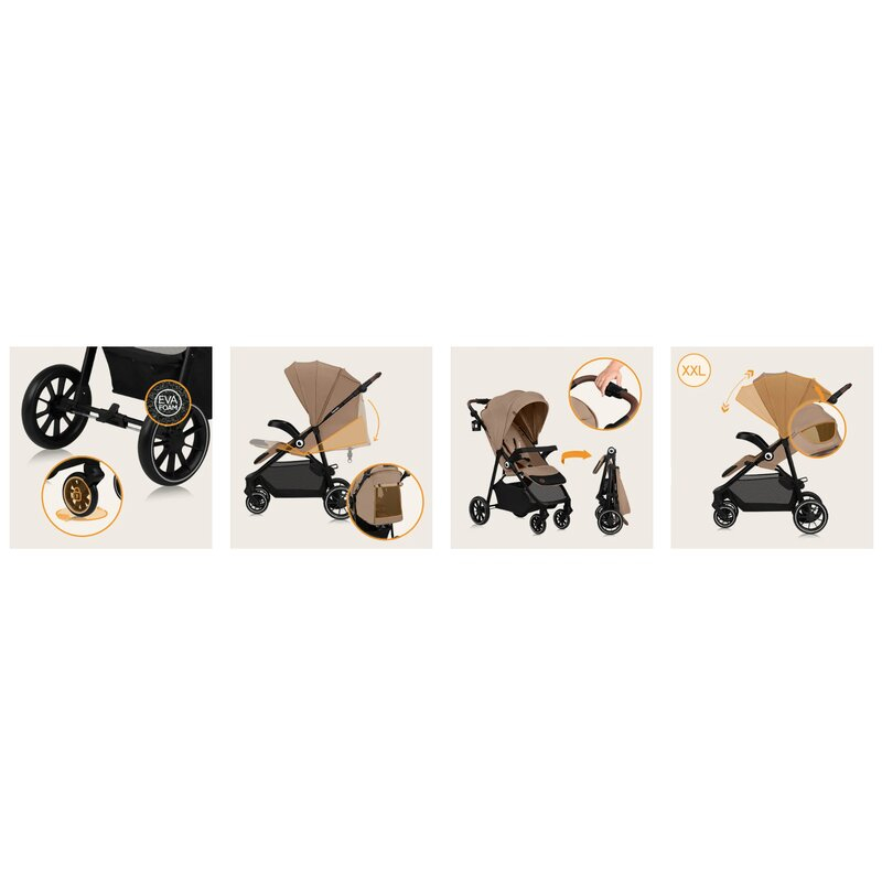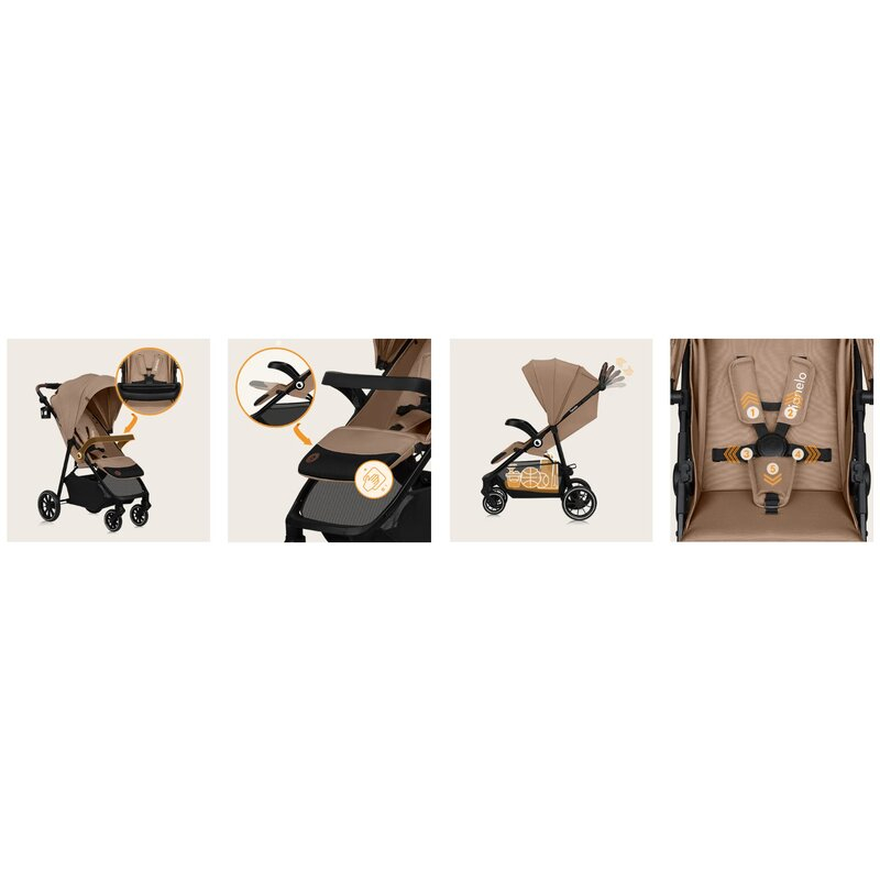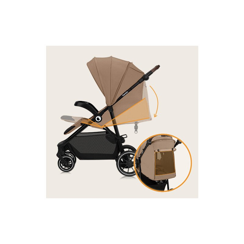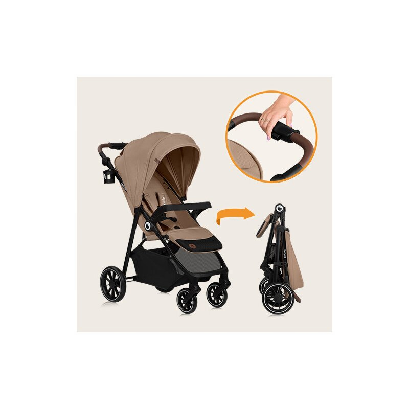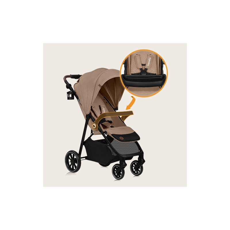 Carucior sport, Lionelo, Emma One, Cu tavita, Suport pahar, Plasa de tantari, Roti EVA, Maner reglabil, Pana la 22 kg, 6 luni+, Bej