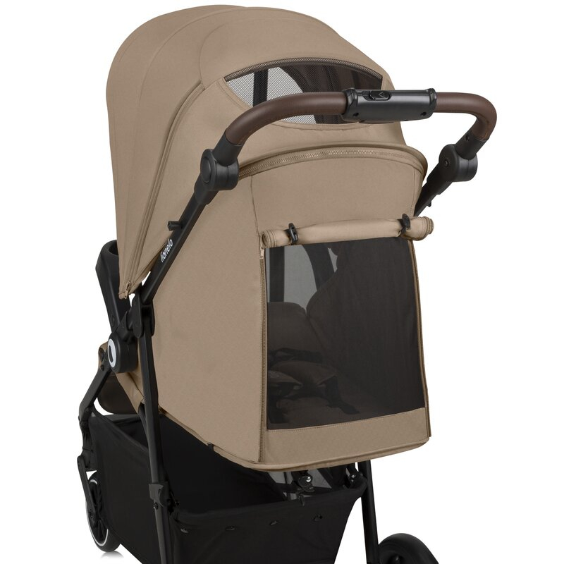 Capotina este dotata cu un panou suplimentar detasabil, oferind protectie sporita impotriva vantului, ploii si altor factori externi. Materialul include filtru UPF 50+ si un strat hidrofob pentru a impiedica patrunderea apei. In plus, un vizor transparent permite supravegherea copilului in timpul plimbarii.