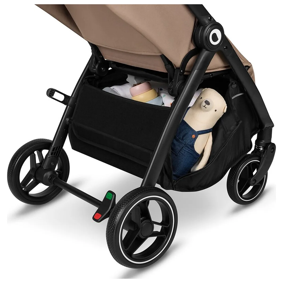 Ingrid dispune de un cos de cumparaturi incorporat si rezistent la apa, care poate fi desfacut cu usurinta pe laterale, facilitand utilizarea zilnica. Capacitatea de pana la 3 kg permite depozitarea tuturor produselor necesare. In grija pentru siguranta parintelui si a copilului, caruciorul are benzi reflectorizante laterale, care asigura o vizibilitate mai buna in intuneric.