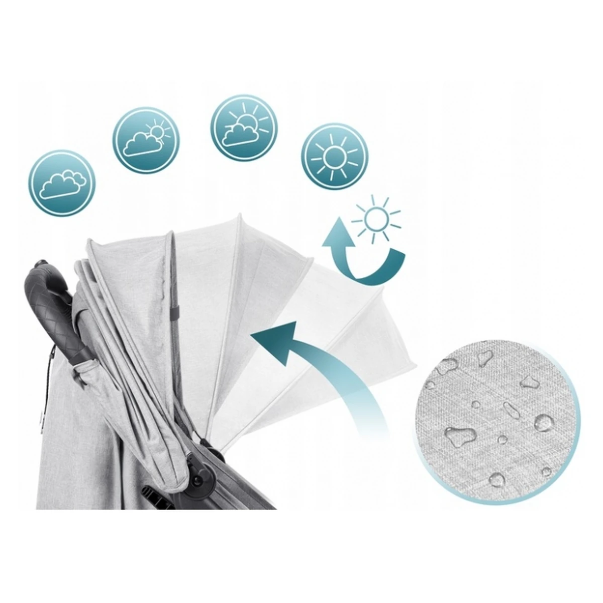 • Baldachinul reglabil si detasabil va protejeaza copilul de soare si ofera protectie UV;