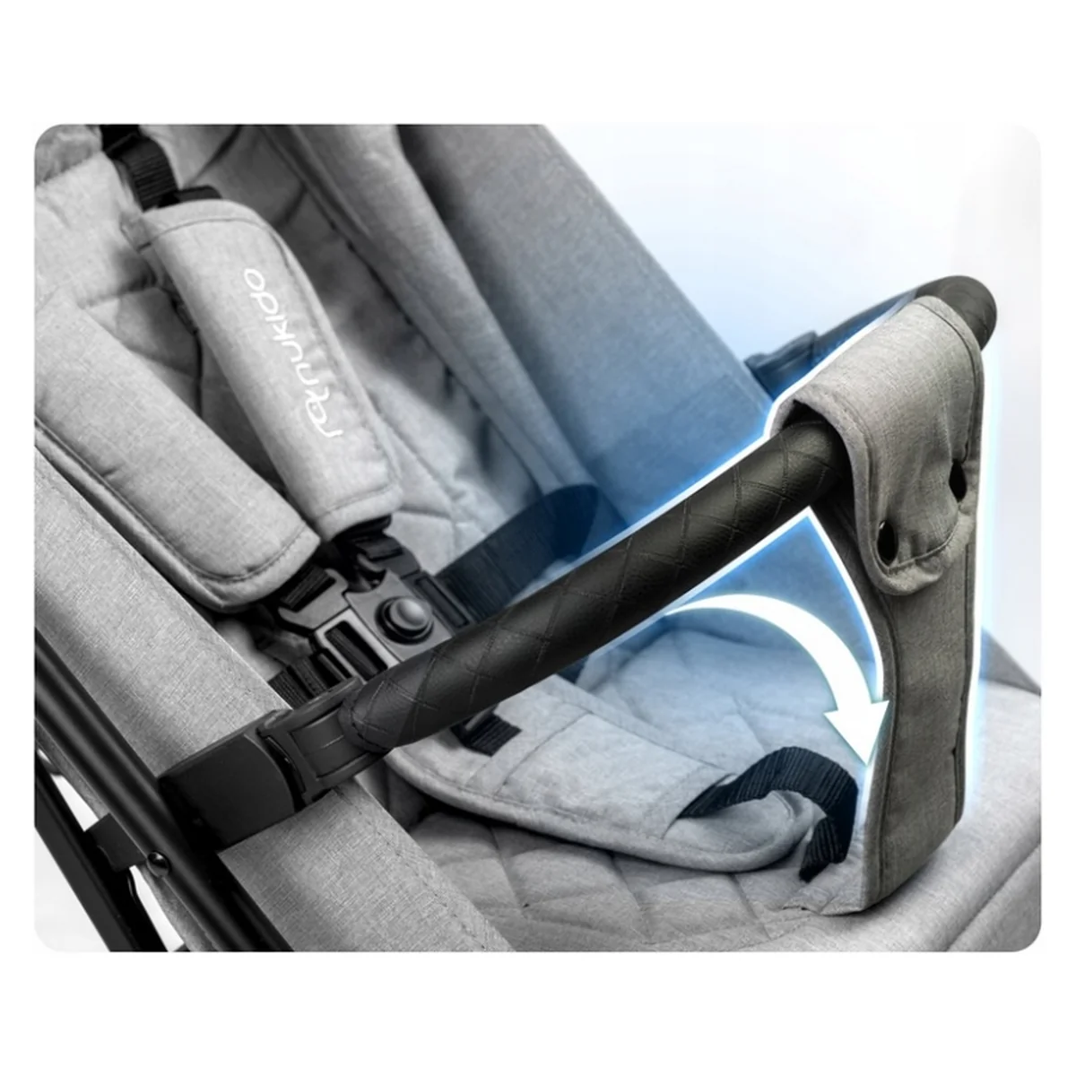 • Bariera de siguranta reglabila – aceasta bariera ofera protectie suplimentara impotriva caderii accidentale a copilului din carucior;