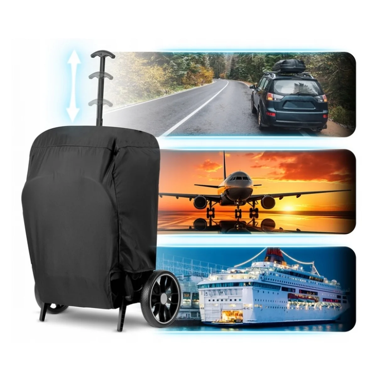 • Roti la 360° cu suspensie si roti mari spate pentru toate tipurile de teren;