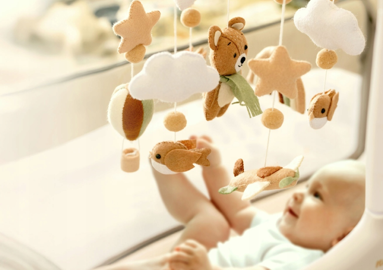 Elementele suspendate se mișcă ușor, atrăgând atenția bebelușului și ajutându-l să își dezvolte capacitatea de a urmări mișcarea, de a distinge formele și culorile încă din primele luni de viață.