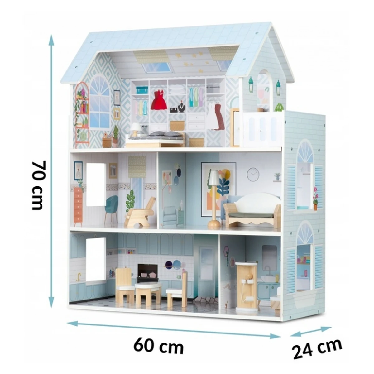 Casuta de papusi Ricokids RK-878, cu 3 etaje si mobilier inclus, ofera copiilor oportunitatea de a-si dezvolta creativitatea, imaginatia si abilitatile sociale prin jocuri de rol.