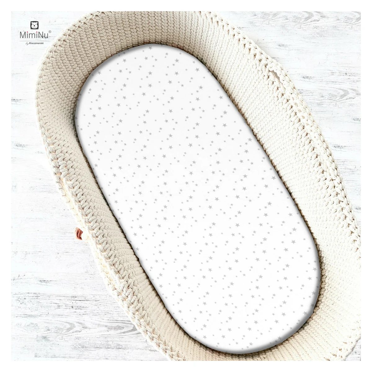 MimiNu Cearceaf cu elastic, MimiNu, Pentru landou/carucior/cosulet, 80x35 cm, bumbac, Mini Gray Stars