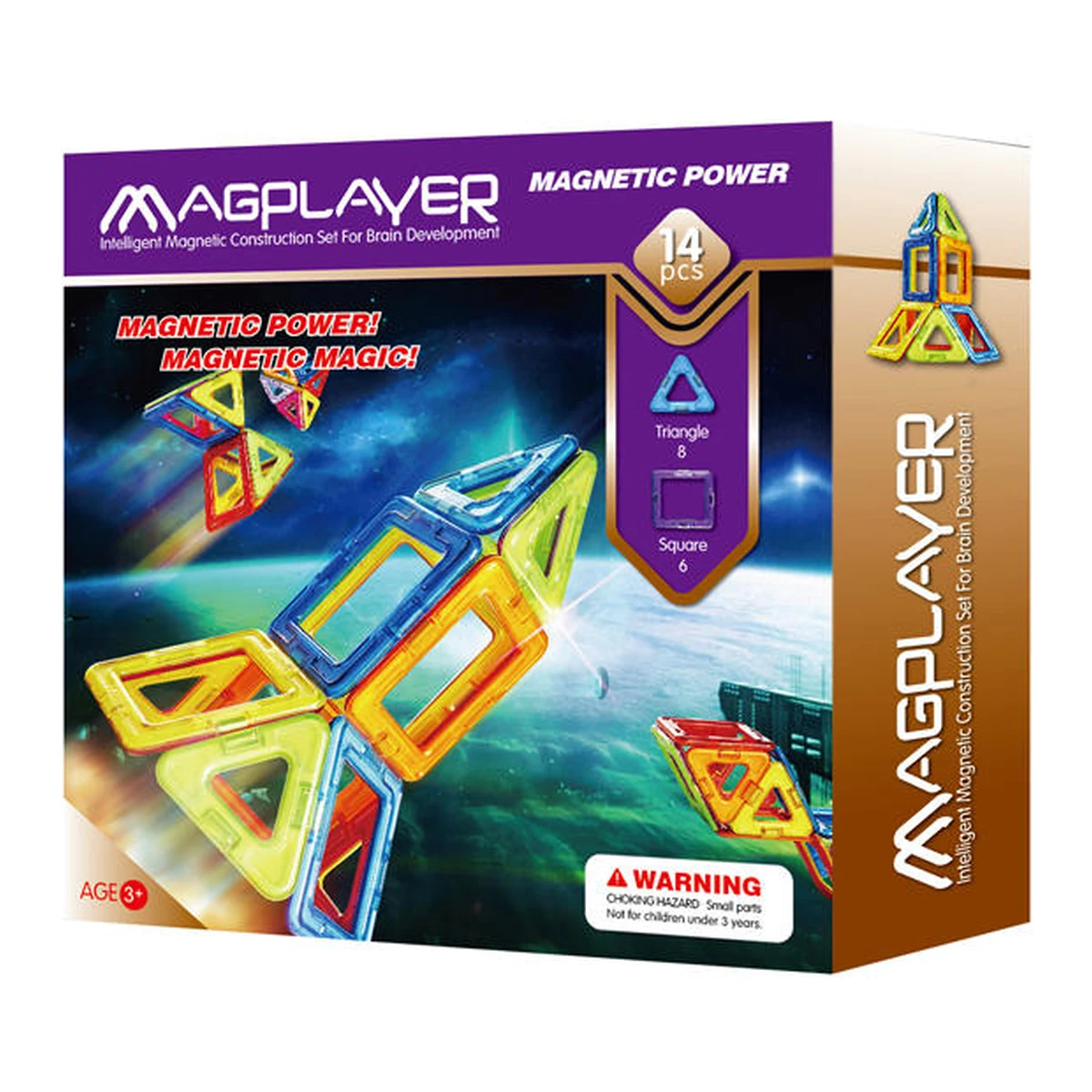 Jocul de constructie magnetic MAGPLAYER - 14 piese este un produs inovator ce stimuleaza dezvoltarea abilitatilor cognitive si a vederii in spatiu la copii.
