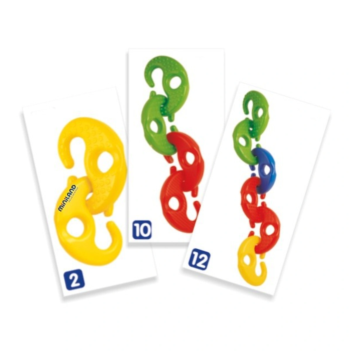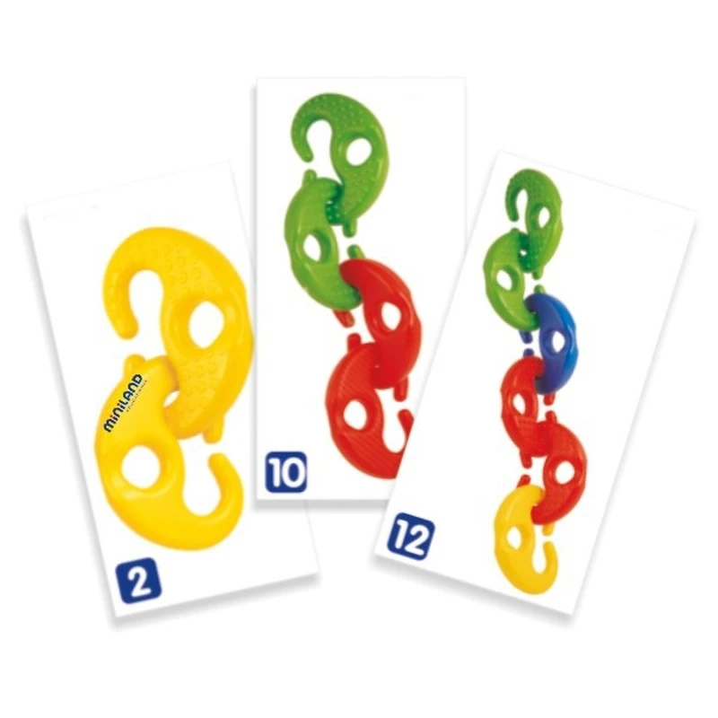 Jocul contine 16 de piese din plastic rezistent si flexibil, cu forme rotunjite, cu texturi si culori diferite, usor de apucat si manevrat de catre cei mici, carduri cu secvente de asamblare, toate intr-o cutie practica si cu maner.