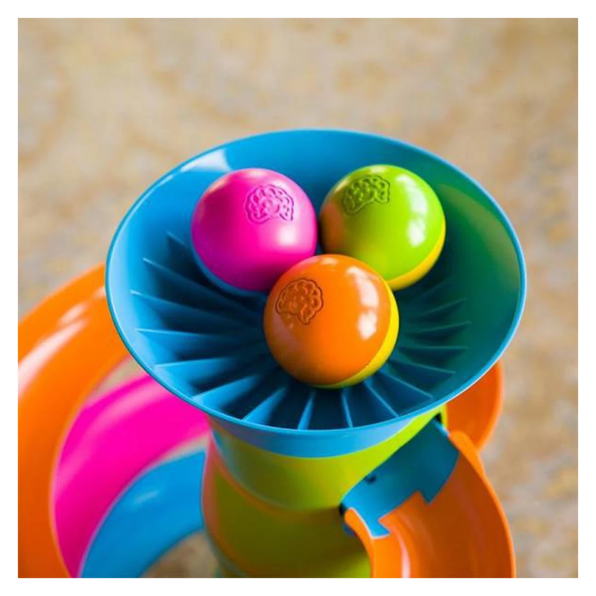 Aruncați mingea pe care tocmai ați apucat în pâlnie de sus, urmăriți-l să se rostogolească până la următoarea oprire, și apoi apuca următoarea minge pentru a face din nou. Și din nou și din nou și din nou!