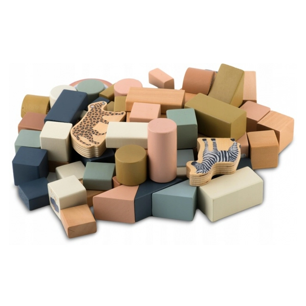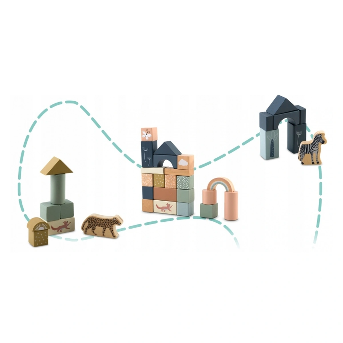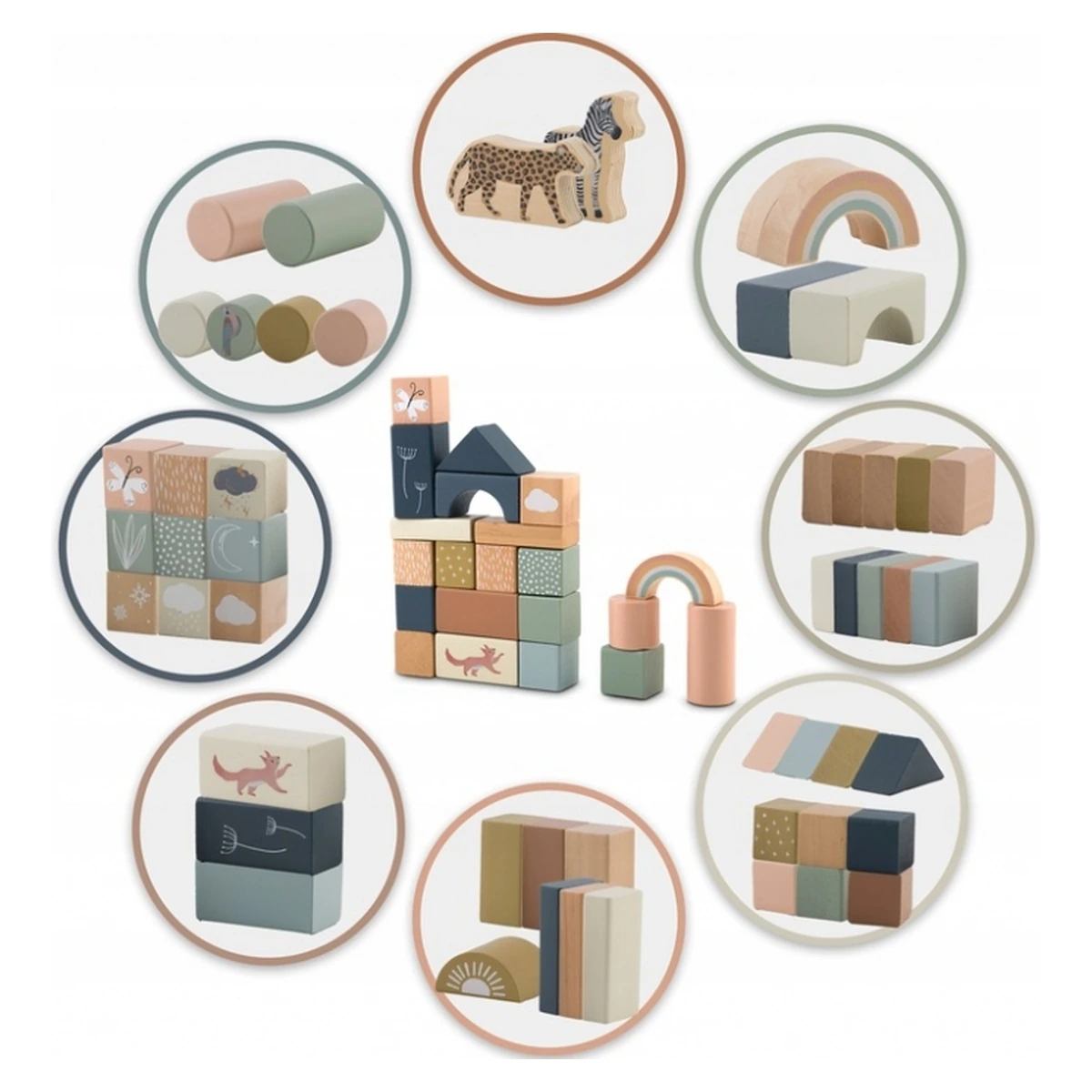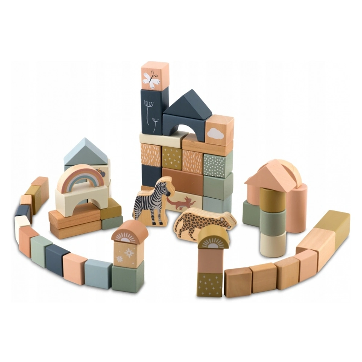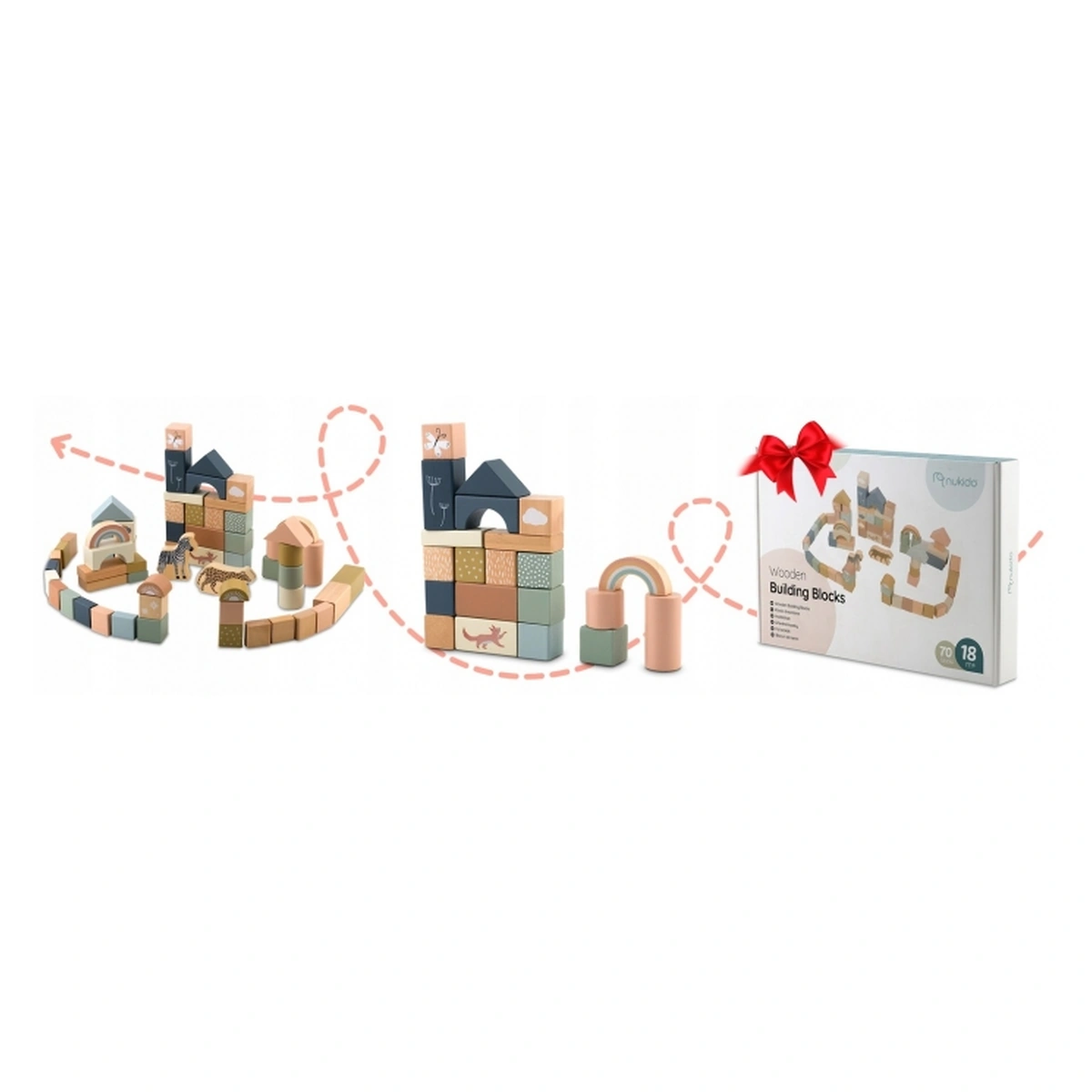 Nukido Set educational cu blocuri din lemn, 70 bucati, Nukido