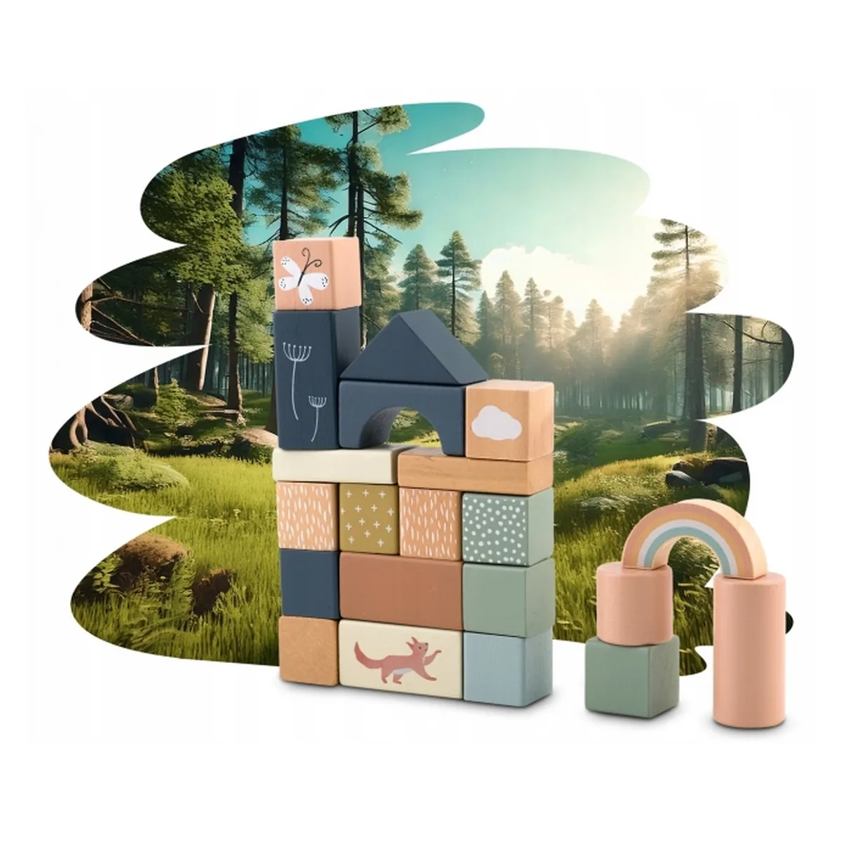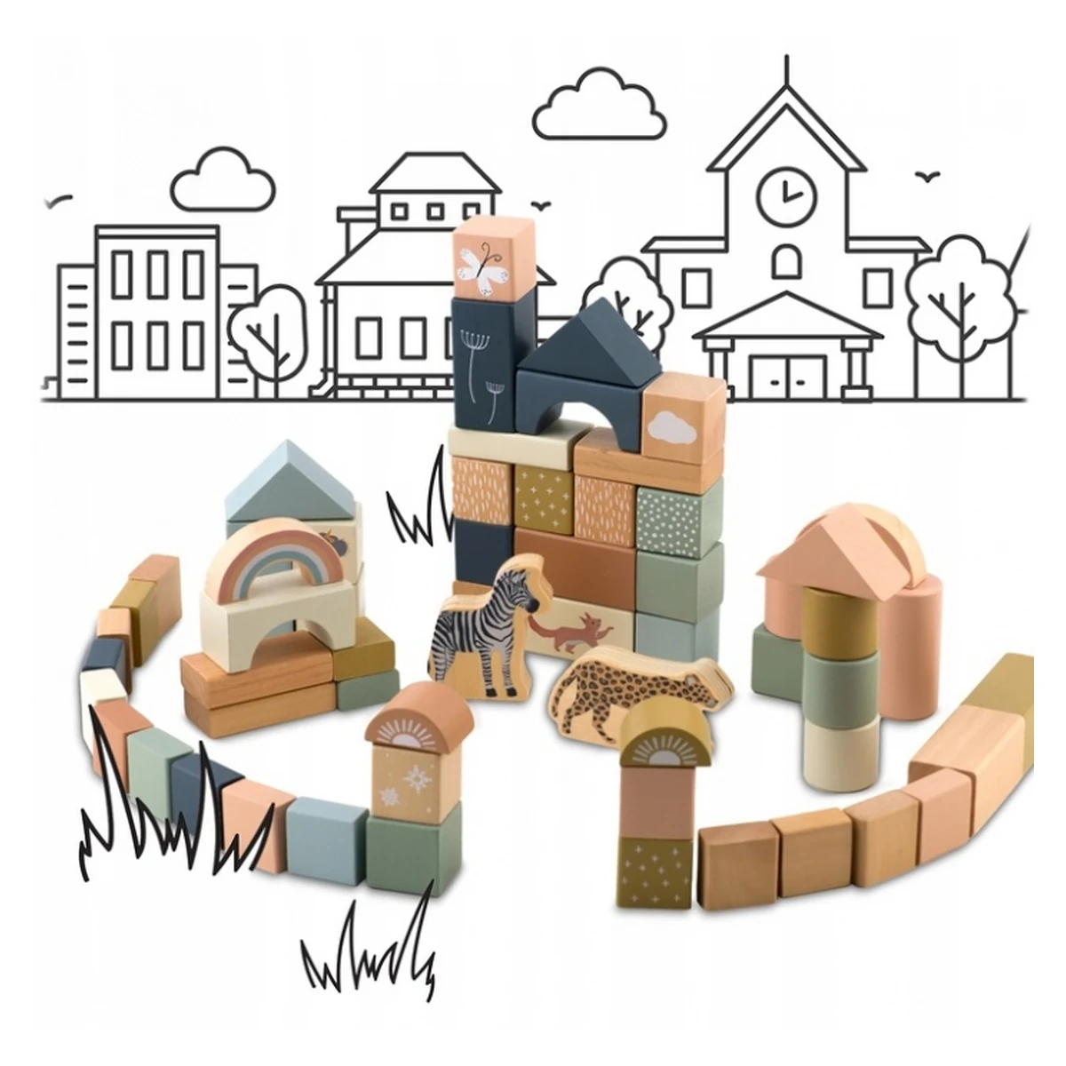 • Stimularea simturilor: diferitele forme si texturi ale blocurilor din lemn stimuleaza simturile vizuale si tactile, oferind copilului tau o experienta senzoriala bogata.