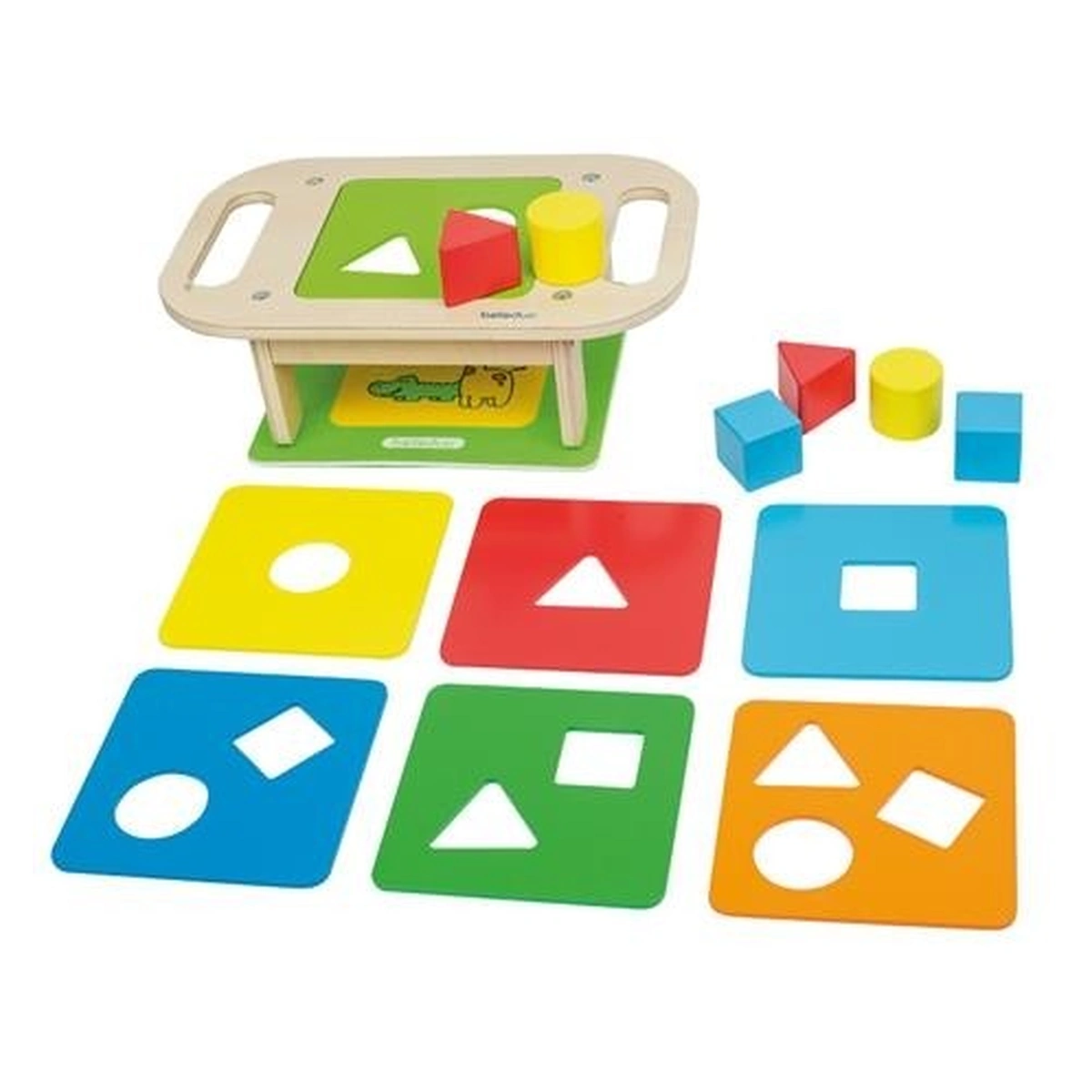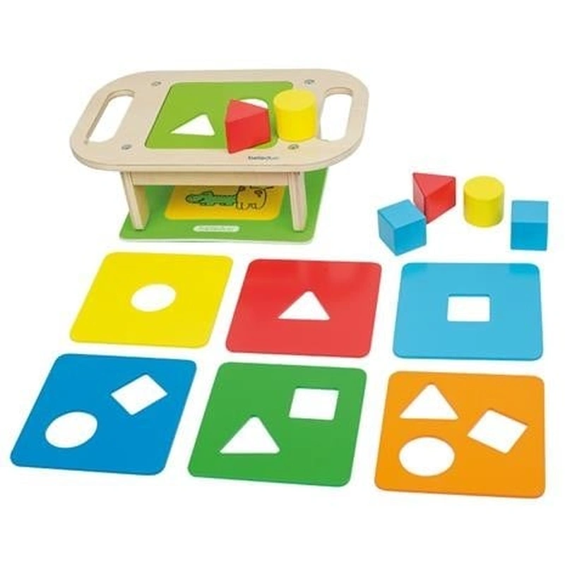 7 placi de sortare diferite cu unu, doua sau trei orificii, astfel incat exista trei niveluri de dificultate.