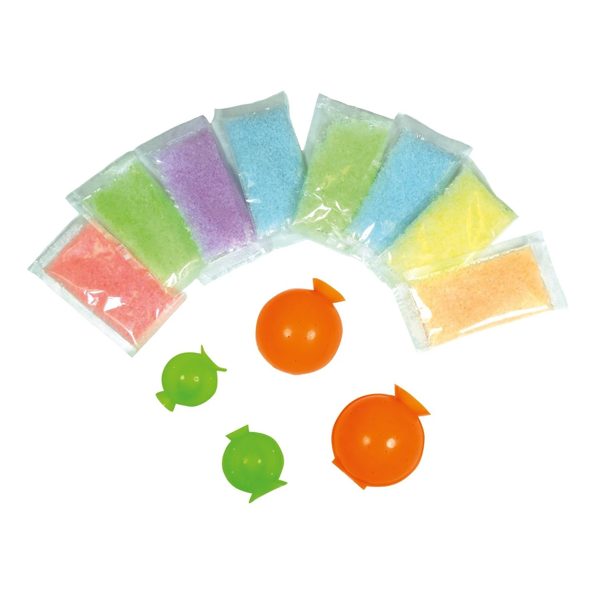 Este foarte simplu: tot ce trebuie sa faci este sa pui cateva straturi de cristal in apa pentru cateva minute. Apoi, cu ajutorul formelor vei modela mingiute mici sau mari.