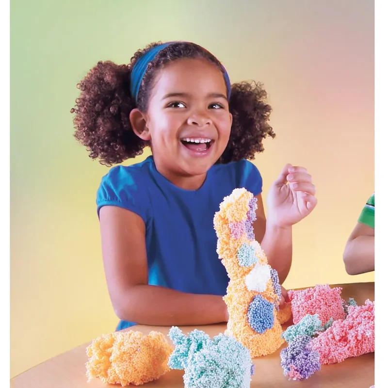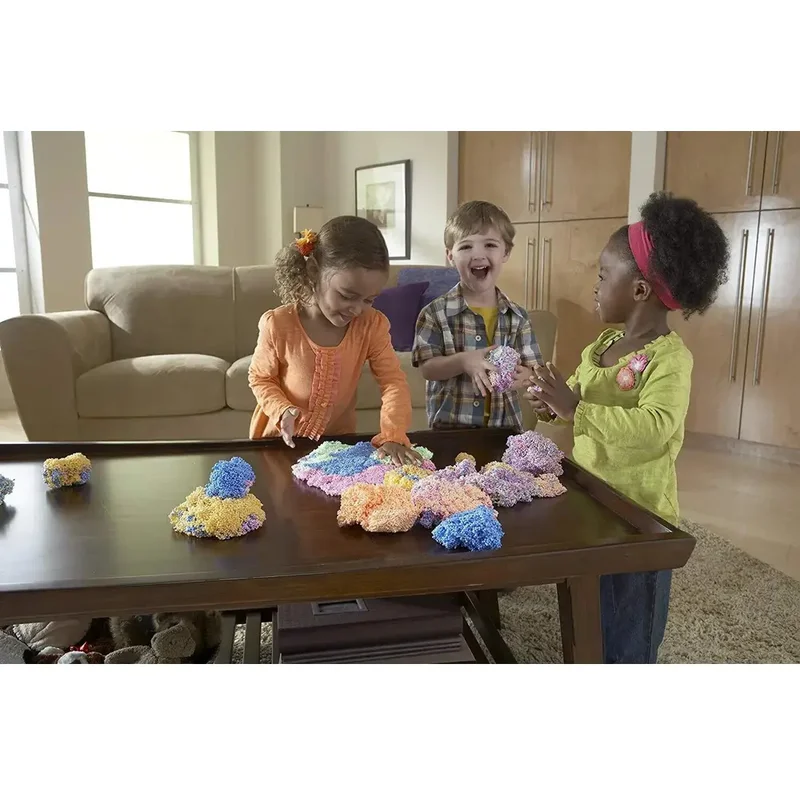Spuma de modelat are acum si particule cu sclipici, dar va asiguram ca in interior este acelasi produs inovativ cu care v-am obisnuit: spuma modelatoare care ofera ore de distractie copiilor, fara a face mizerie.