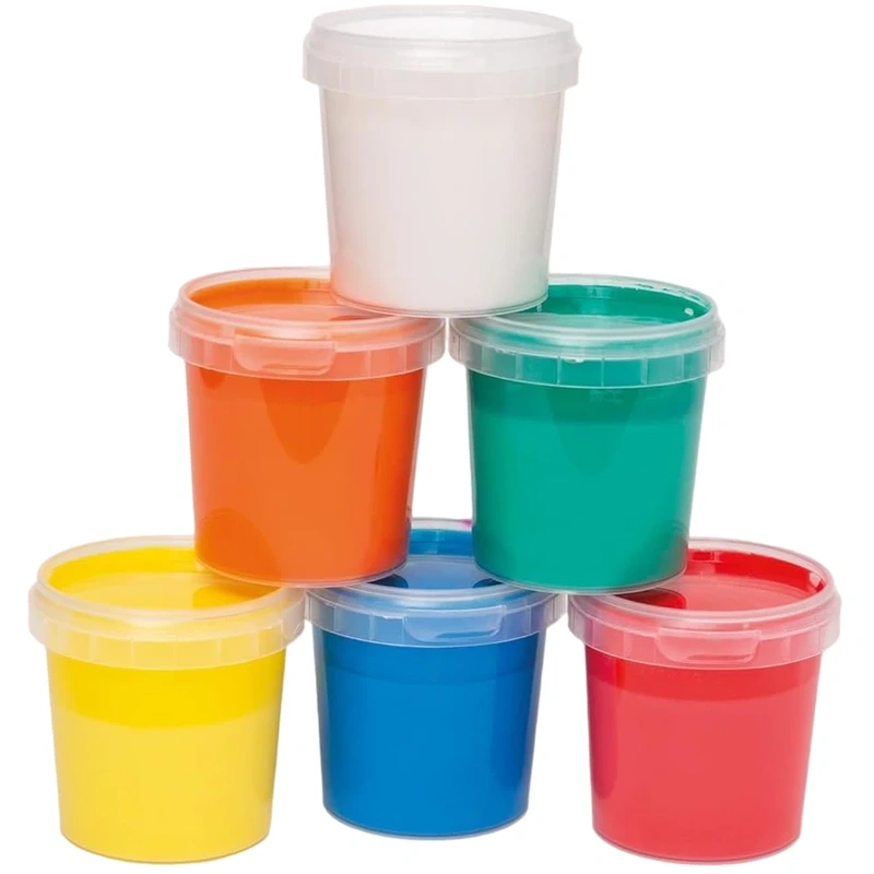 - setul include: 6 culori (rosu, verde, albastru, galben, portocaliu si alb) pastrate in recipiente de 150 gr