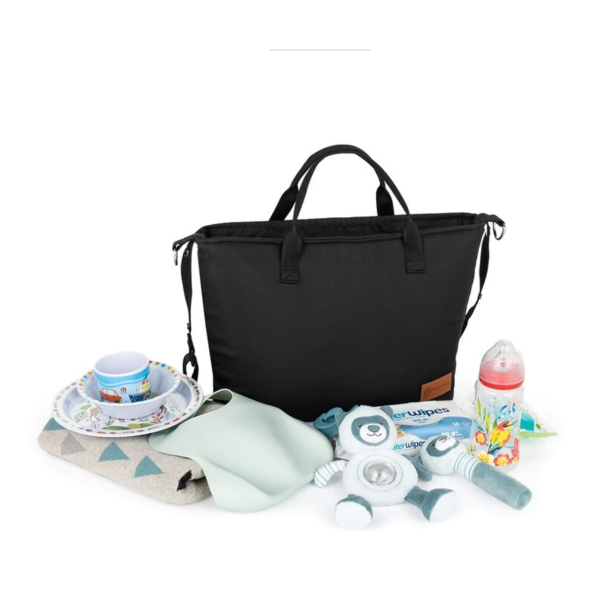 Datorita curelei de umar, o poti purta punand-o pe manerul caruciorului, dar si lejer pe umar, sau peste corp ca o geanta crossbody.
