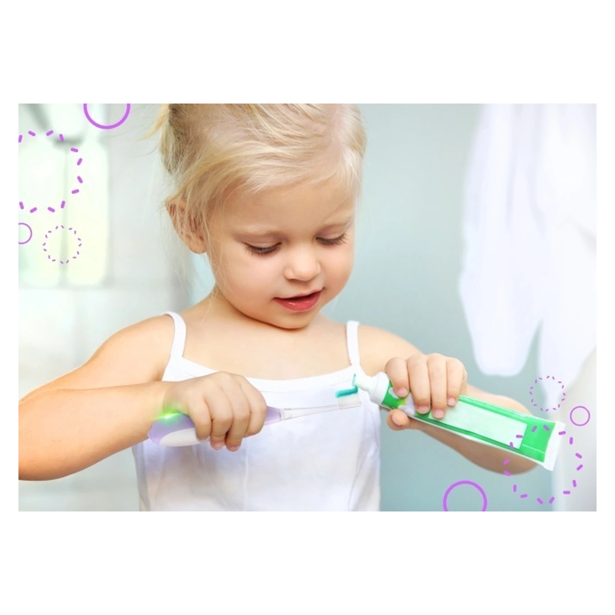 Lumina este un stimul captivant pentru orice copil curios. Iluminarea albă, plasată în partea superioară a mânerului, nu este doar un element atrăgător. Poate fi folosită pentru a inspecta interiorul cavității bucale și pentru a verifica dacă toți dinții copilului au fost curățați corespunzător.