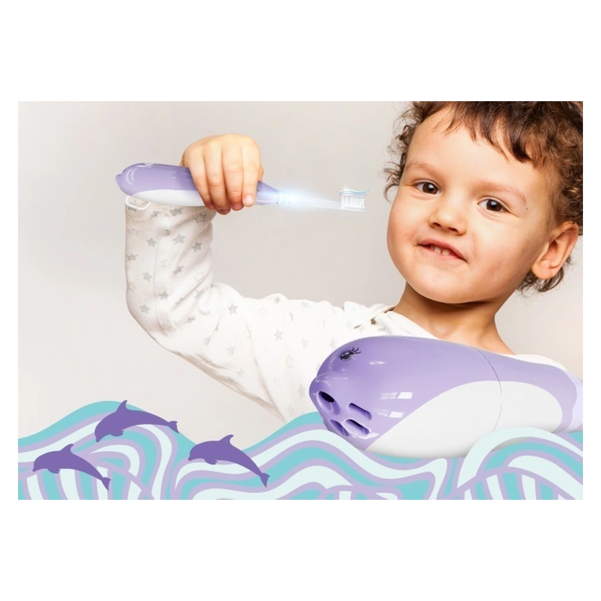 Nu există nimic mai plăcut decât să întâlnești un prieten care îți aduce zâmbetul pe buze și îți oferă curaj. De acum, fiecare copil poate avea un astfel de tovarăș sub forma delfinului Tutti! Obișnuit cu apa, acest delfin simpatic îi va ajuta rapid pe cei mici să învețe secretele unui periaj corect.