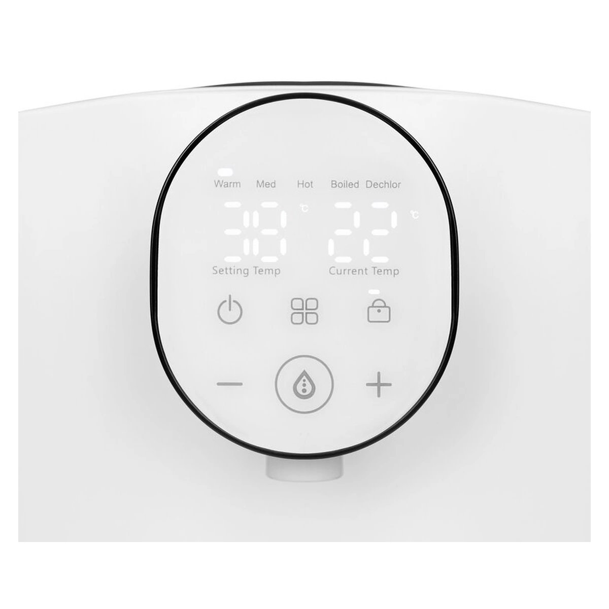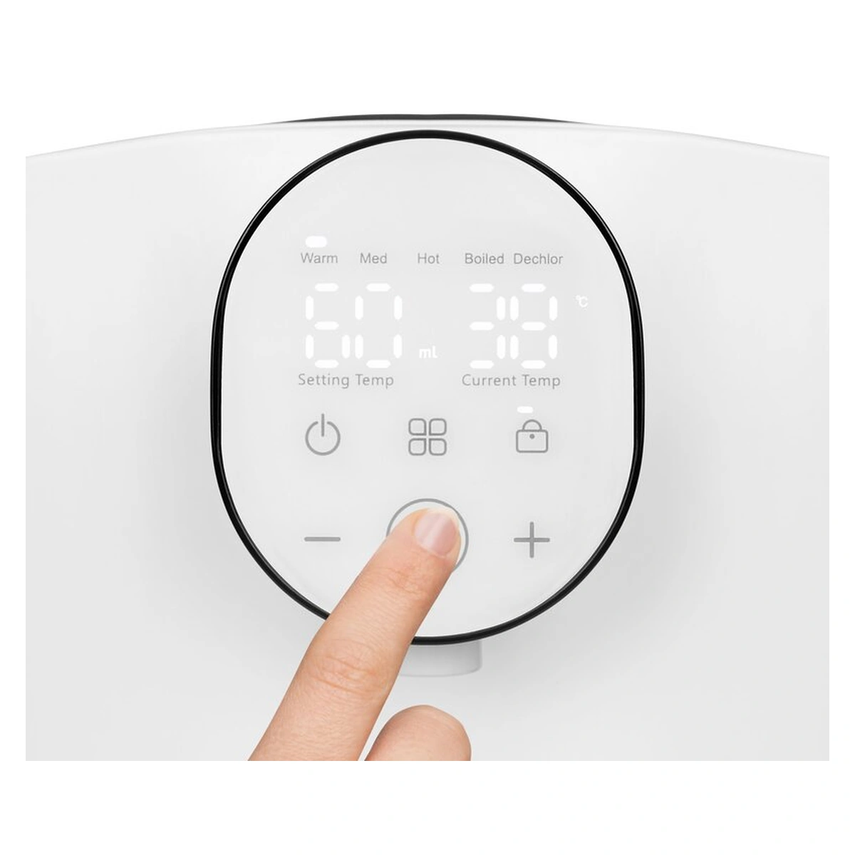 Functia de declorinare asigura ca apa folosita pentru pregatirea meselor este curata si sigura pentru sistemul digestiv delicat al bebelusului. Aparatul dispune de un afisaj LED pentru o operare simpla, afisand atat temperatura curenta cat si cea setata. Recipientul de apa din sticla de 2 litri este igienic si faciliteaza monitorizarea nivelului apei.