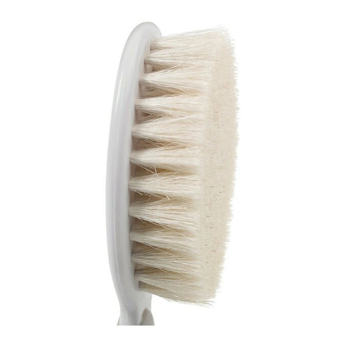 Ofera-i bebelusului tau cea mai blanda si sigura experienta de ingrijire a parului, inca din primele zile de viata. Acest set elegant, format din perie cu peri naturali si pieptene cu varfuri rotunjite, este creat special pentru scalpul sensibil al nou-nascutilor.