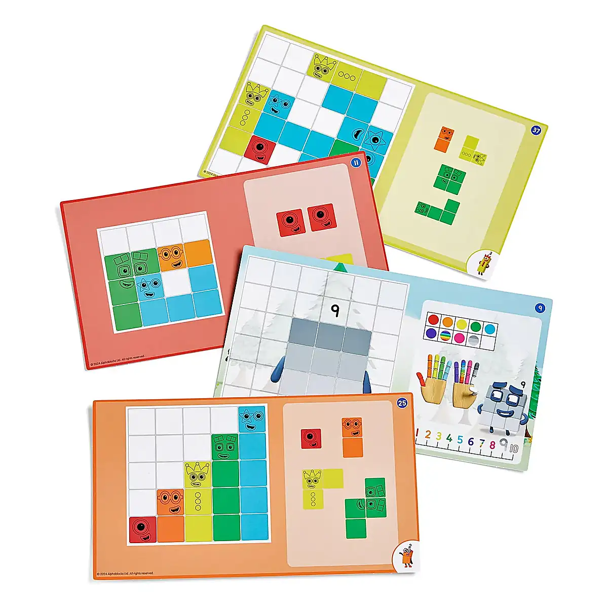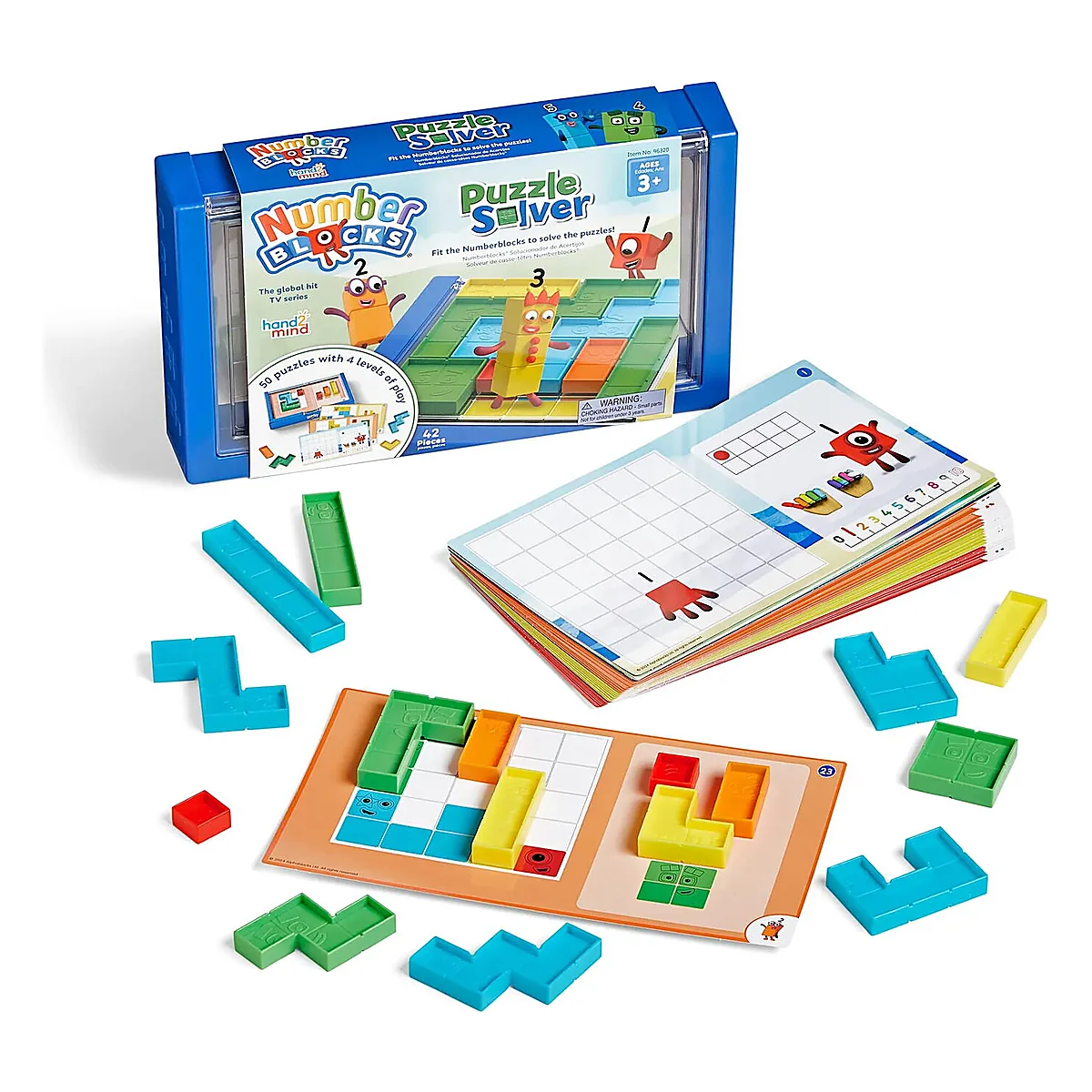 - setul include personajele Numberblocks de la unu la cinci, fiecare reprezentat prin piese tactile care pot fi rasucite, intoarse si asezate pentru a rezolva puzzle-urile