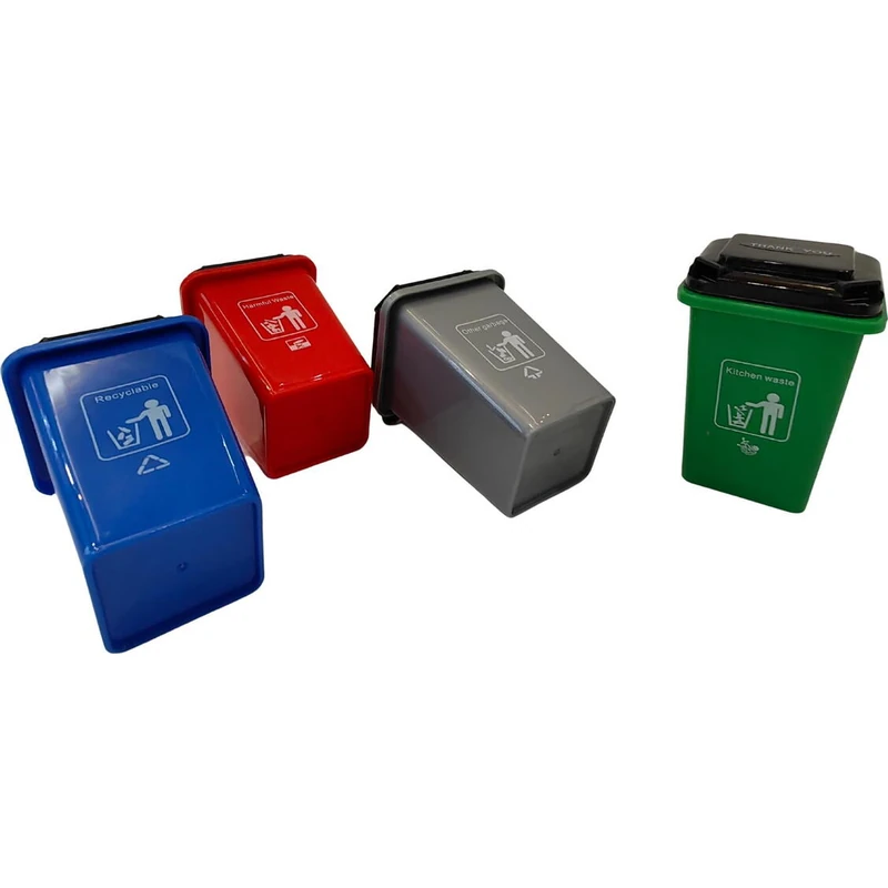 • 4 cosuri de gunoi in 4 culori (verde, albastru, rosu si gri)