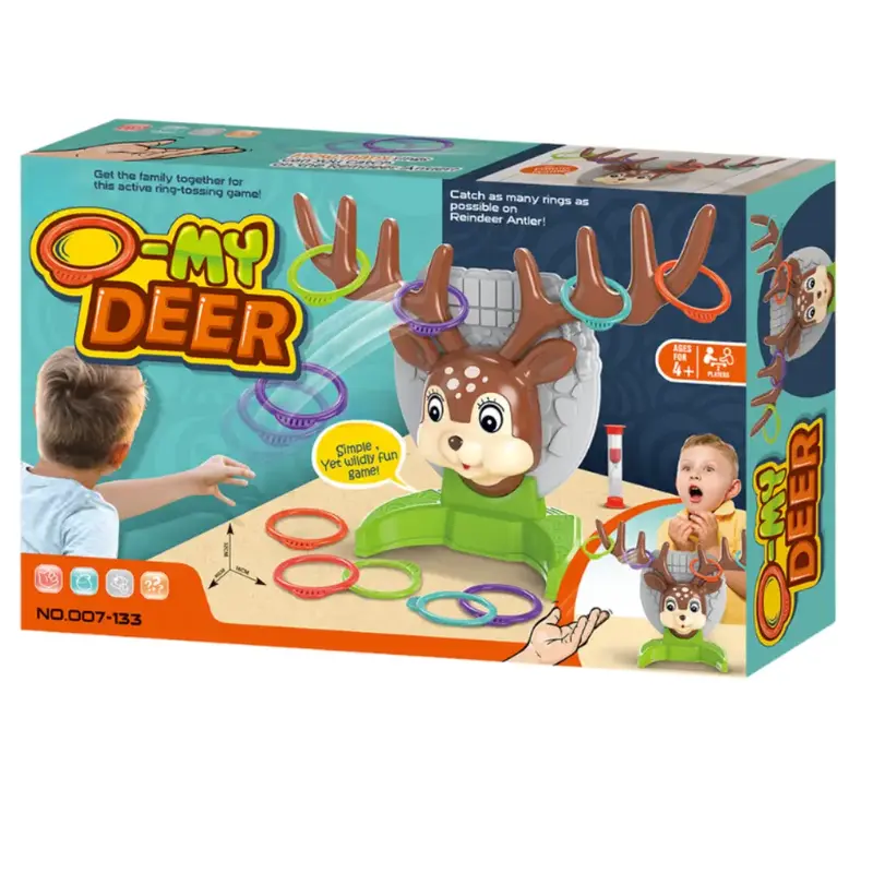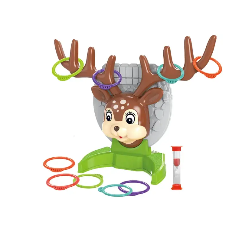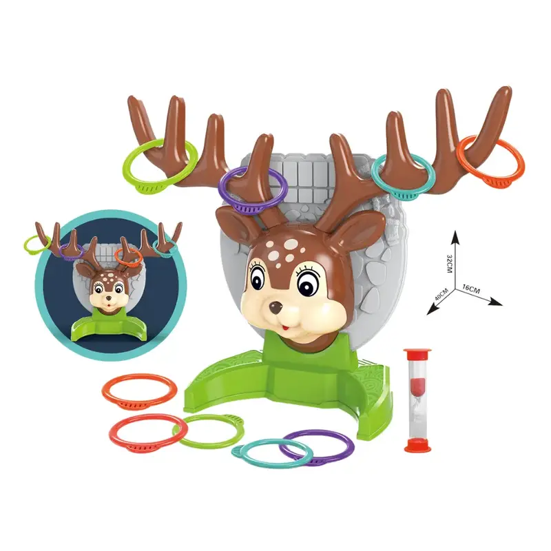 Caracteristici principale: La pornirea cronometrului, fiecare jucător încearcă să arunce inelele pe coarnele cerbului. Câștigă jucătorul care reușește să agațe cele mai multe inele înainte ca timpul să expire. Jocul ajută la dezvoltarea echilibrului și coordonării ochi-mână. Se pot crea nivele de dificultate variate: nimerirea unui corn specific sau creșterea distanței de aruncare. În plus, copiii pot învăța culorile cu ajutorul acestui simpatic cerb. Pot participa între 1 și 4 jucători.