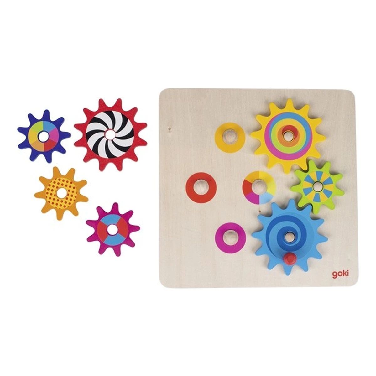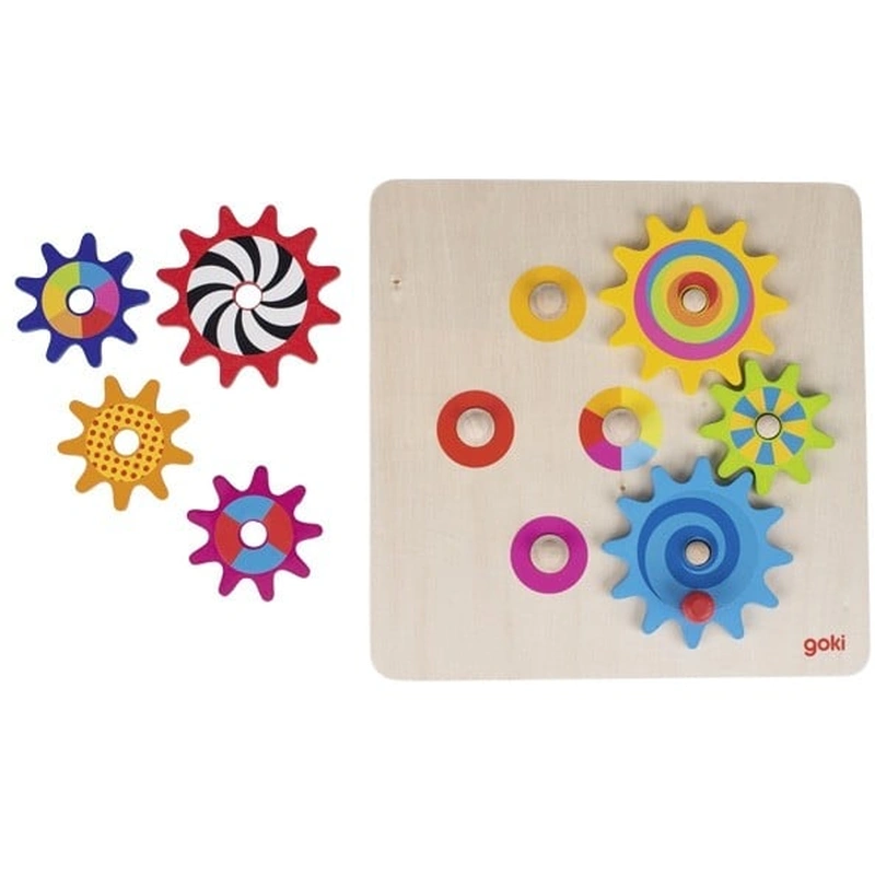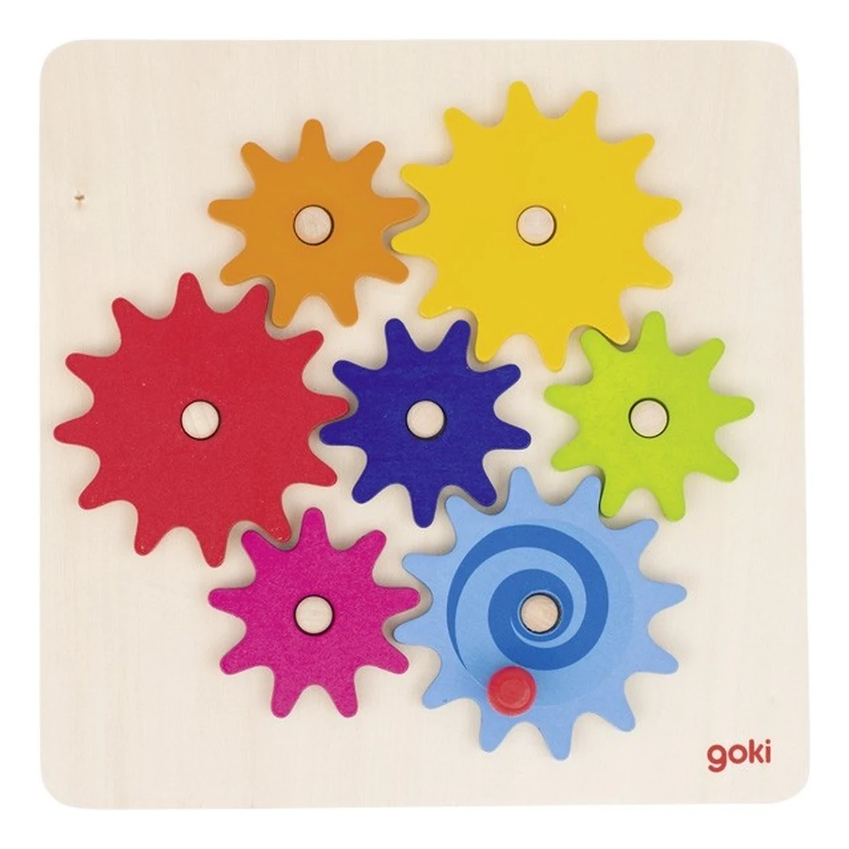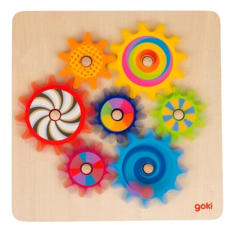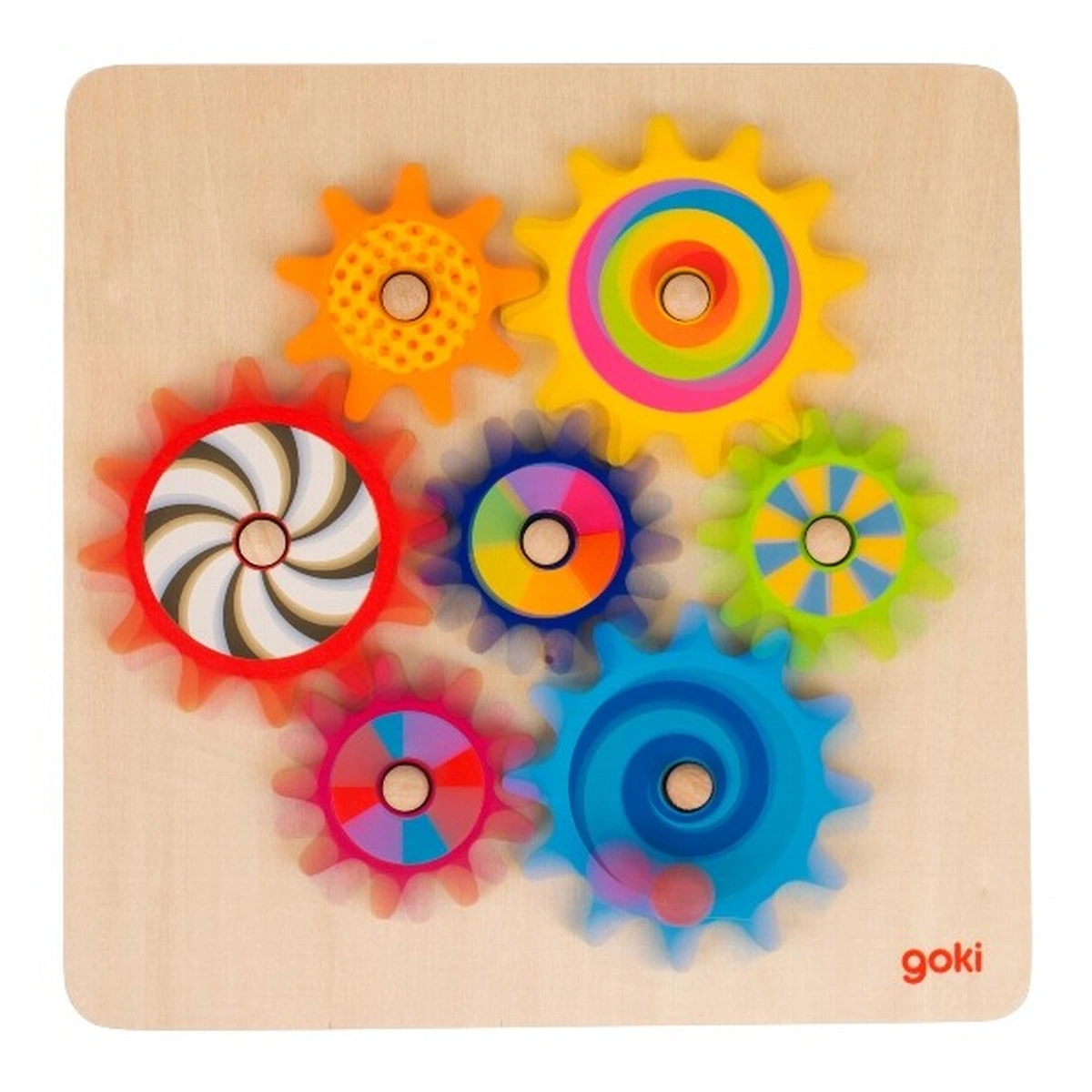 Cand roata albastra este rotita, iar toate piesele sunt potrivite corespunzator, toate rotitele se vor invarti.
