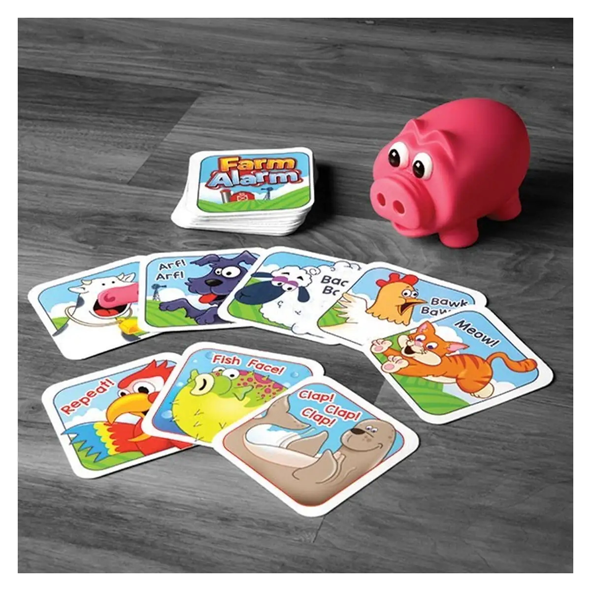 Alarma la ferma este un joc de memorie copiii invatand sunetele animalelor odata cu repetarea lor in ordinea cardurilor.