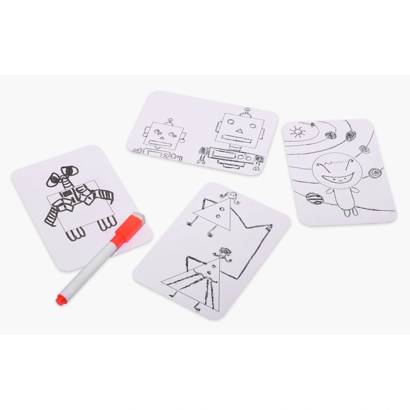 Acum acest lucru este posibil! Foloseste cele 3 forme geometrice (Cerc, Triunghi, Patrat) pentru a desena obiecte sau personaje. Da frau liber imaginatiei si inventeaza sute de povesti!