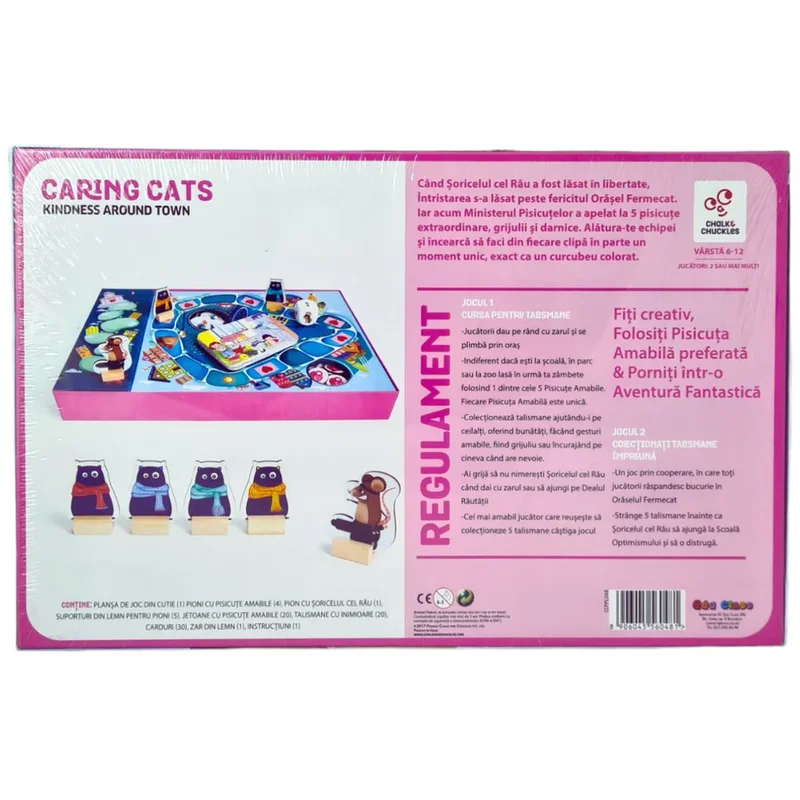 Jocul interactiv "Pisicutele amabile" este perfect pentru intreaga familie si isi propune sa dezvolte abilitatile de relationare, empatie, jocul prin cooperare, responsabilitatea sociala si afectivitatea la copii. Inspirat de povestea Oraselului Fermecat, jocul ii invita pe jucatori sa se alature echipei celor 5 pisicute extraordinare pentru a face fapte bune si a aduna talismane pretioase.