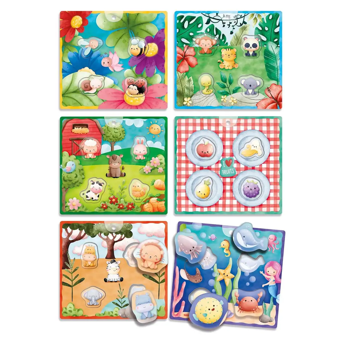 - jocul include sase planse de joc care sunt prevazute cu jocuri pe doua niveluri, care sunt atractive pentru cei mici si contribuie la imbunatatirea dexteritatii manuale si a coordonarii mana-ochi