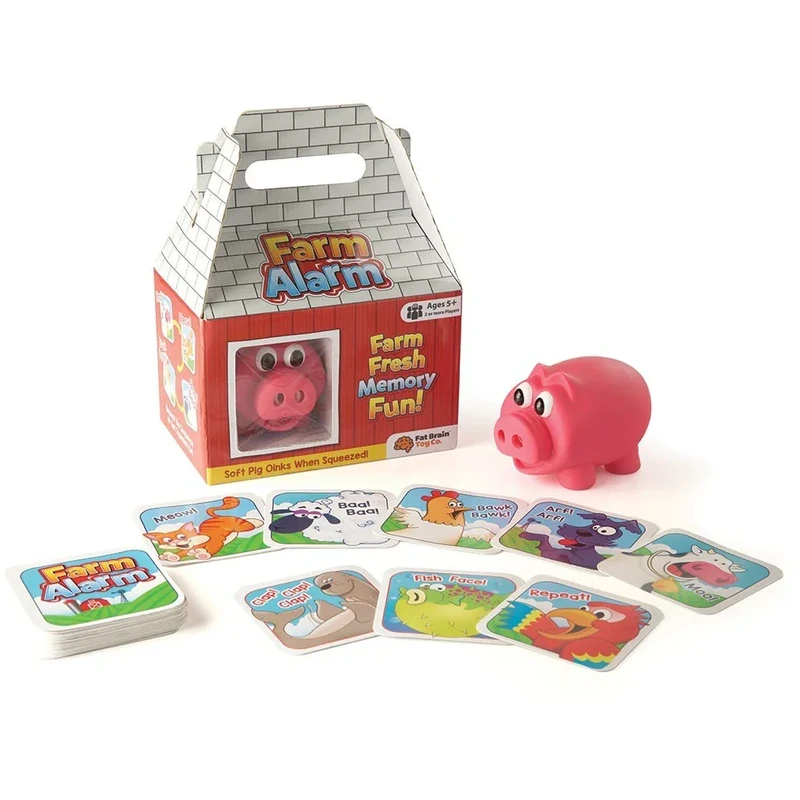 Alarma la ferma este un joc de memorie copiii invatand sunetele animalelor odata cu repetarea lor in ordinea cardurilor.