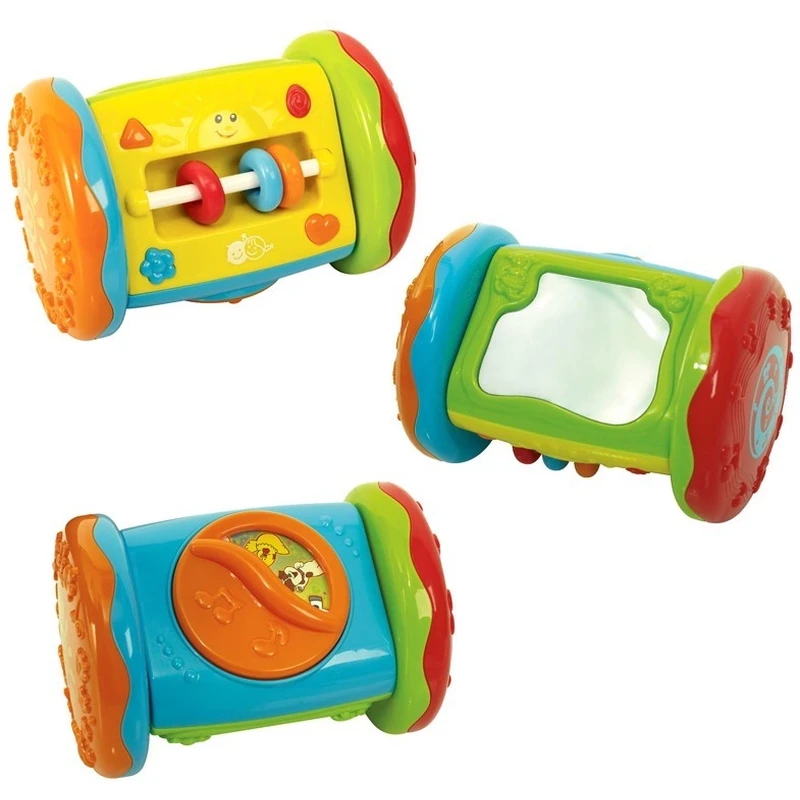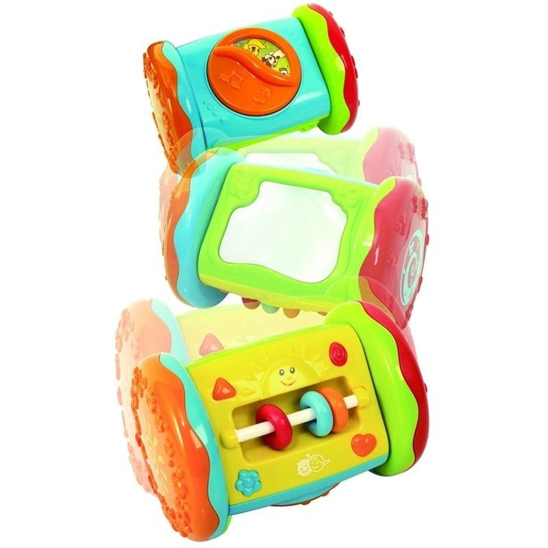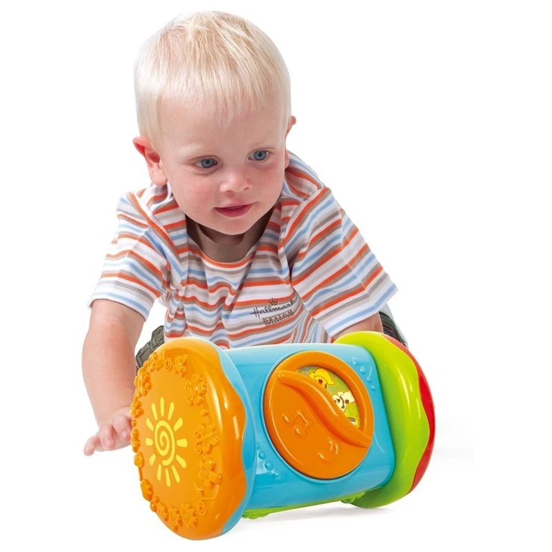 Un cilindru vesel care distreaza copilasul si ajuta la dezvoltarea functiile motorii, coordonarea ochi-mana, relationarea cauza-efect, auzul si vazul.