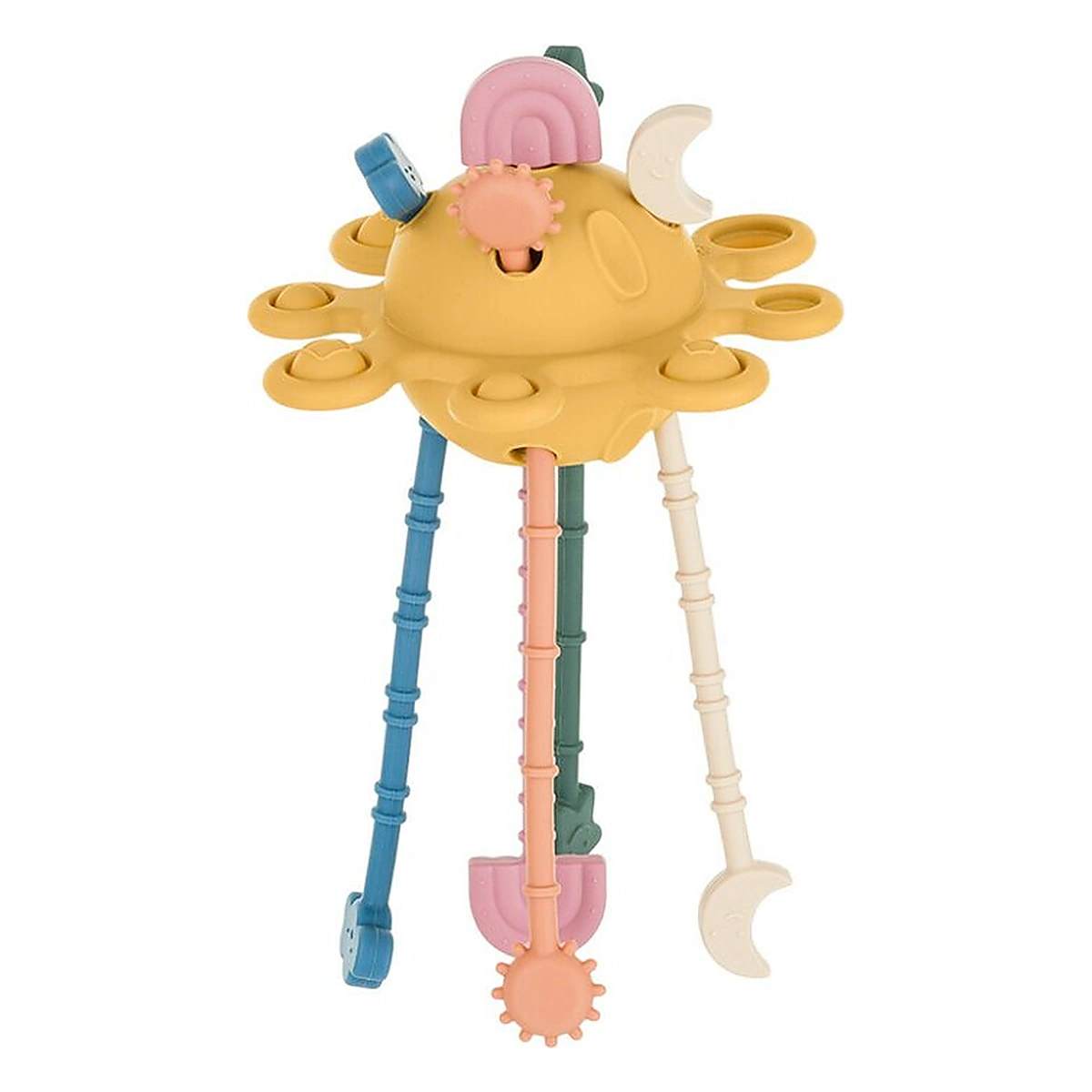 O jucarie senzoriala versatila in forma de planeta nu numai ca stimuleaza simturile, dar sustine si dezvoltarea mainilor mici. Aceasta jucarie neobisnuita poate servi atat ca dispozitiv de dentitie, cat si ca instrument pentru dezvoltarea abilitatilor manuale.