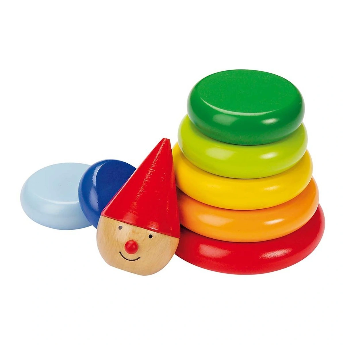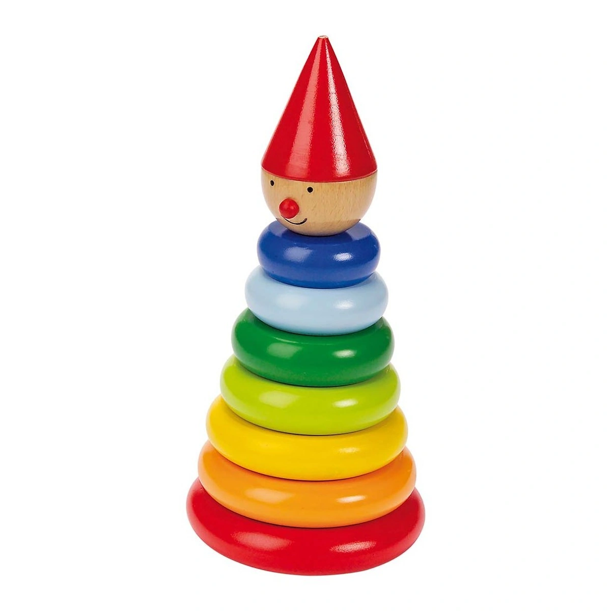 Piramida vesela din lemn ofera un mod distractiv de a invata formele, culorile, de a percepe cantitatile si relatiile de marime.Toate culorile curcubeului sunt reprezentate de cele 7 inele groase si usor de apucat..