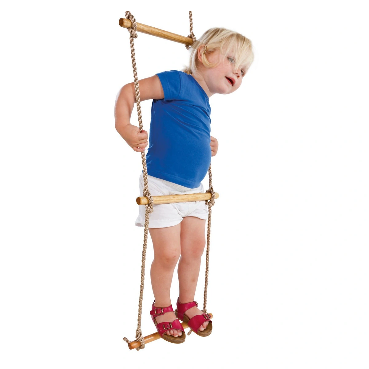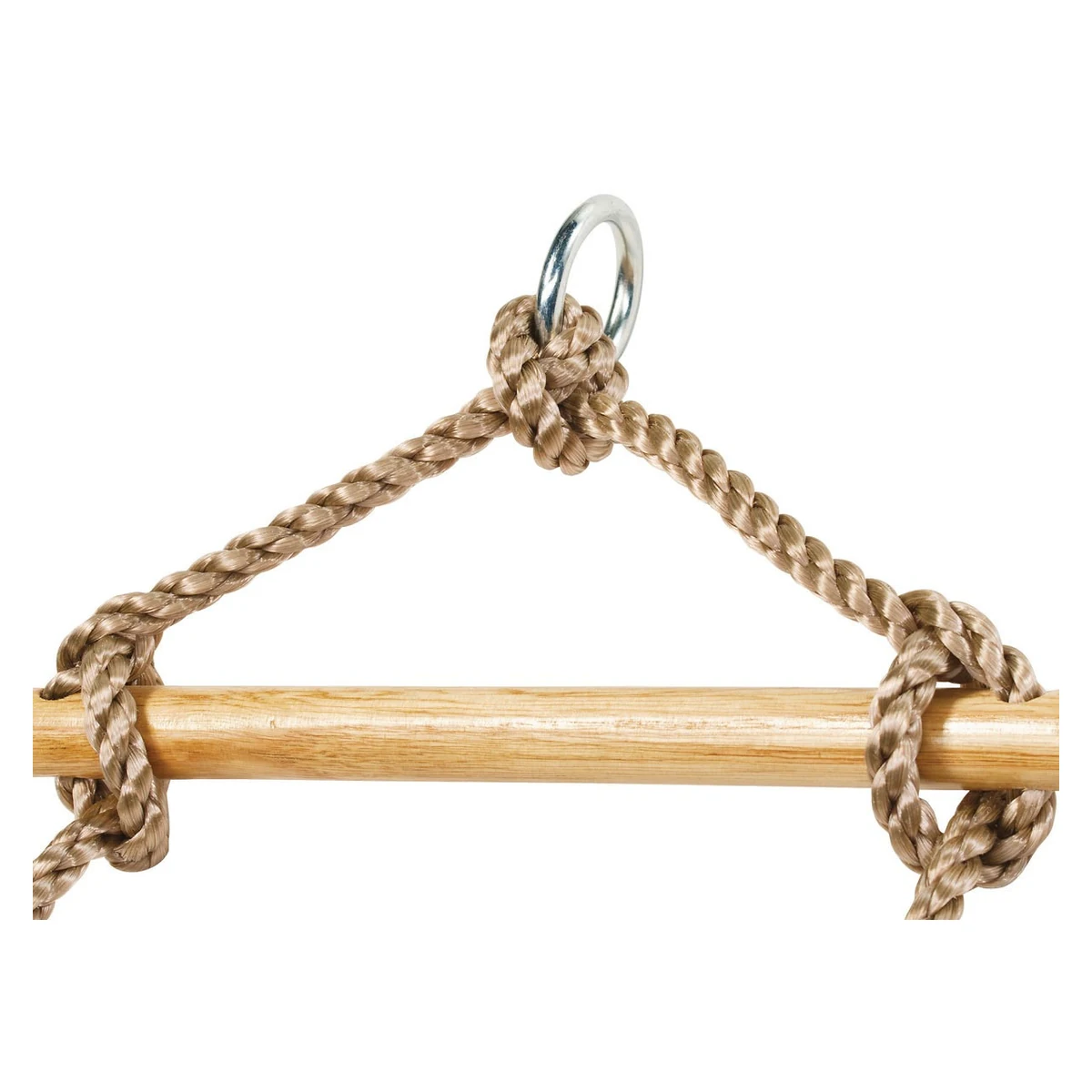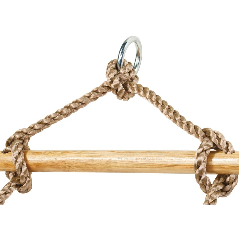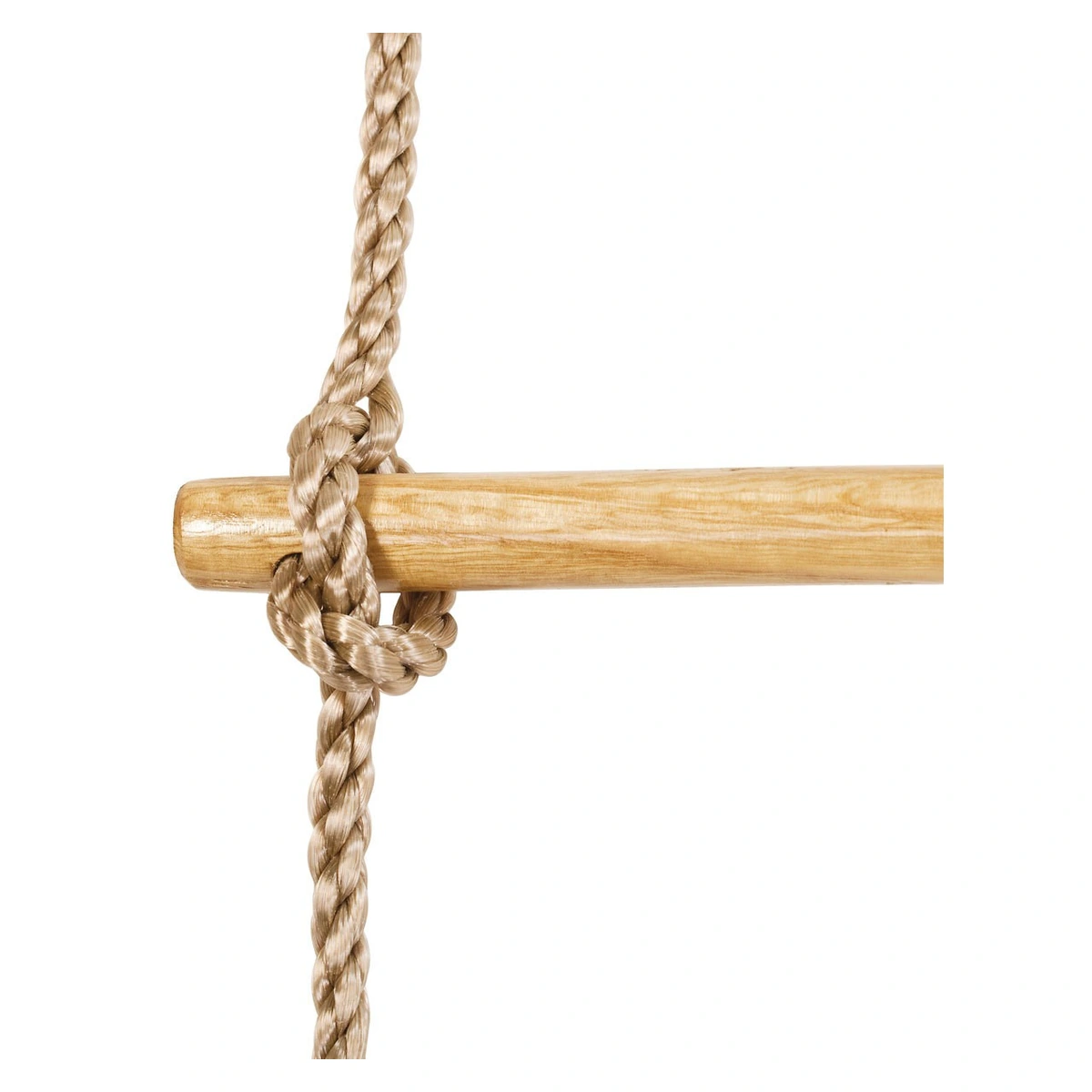 Scara este confectionata din materiale de cea mai inalta calitate, prezinta un singur element de prindele in partea superioara si anume un inel realizat din otel galvanizat, iar in dreptul fiecarei treapte din lemn este un nod care impiedica alunecarea acesteia.