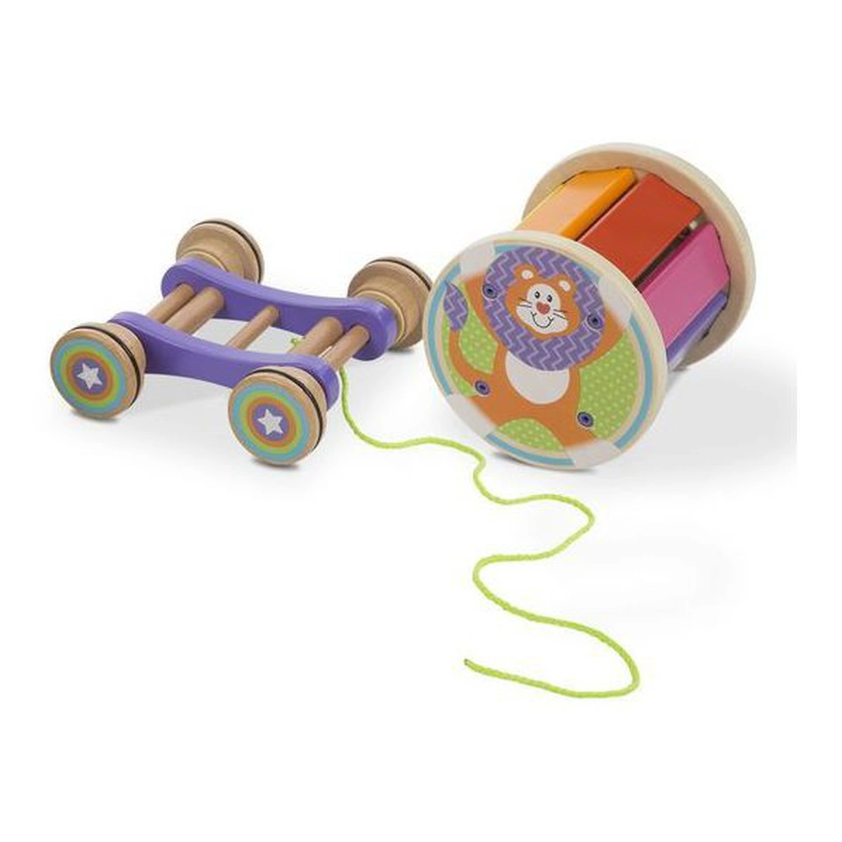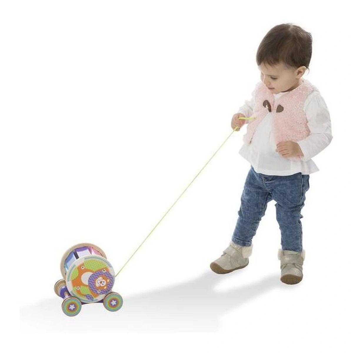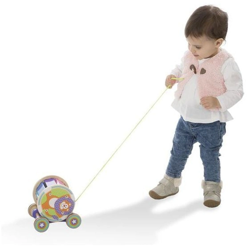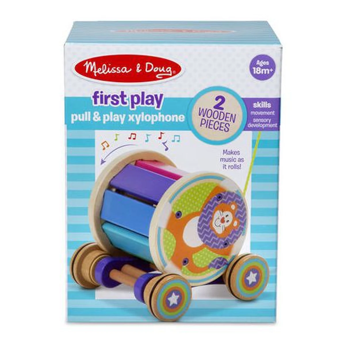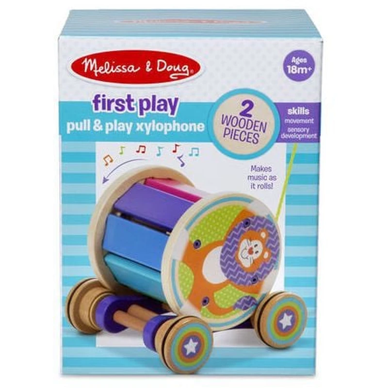 Luati muzica in miscare cu aceasta jucarie-xilofon curcubeu care emite sunete pe masura ce se roteste cand este trasa.