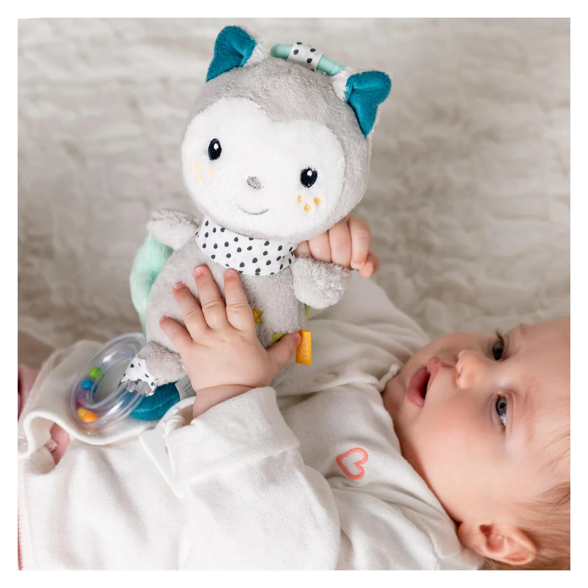 Ofera-i micutului tau nenumarate clipe de distractie cu aceasta jucarie in forma de pisica care il poate insoti pretutindeni.