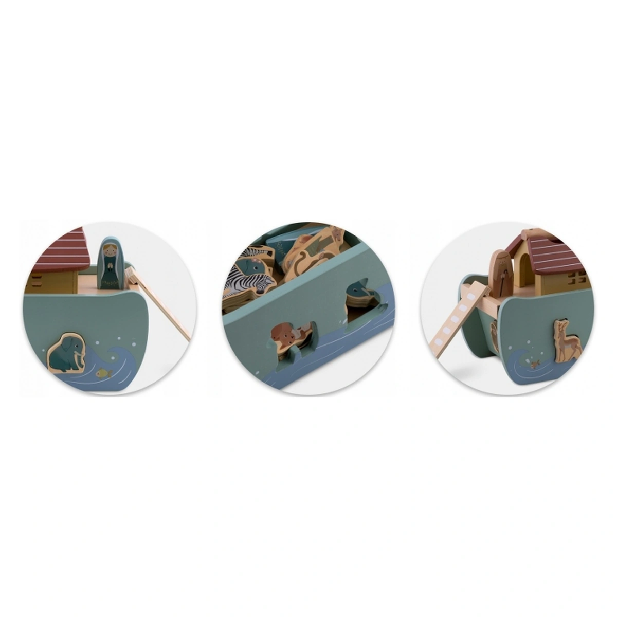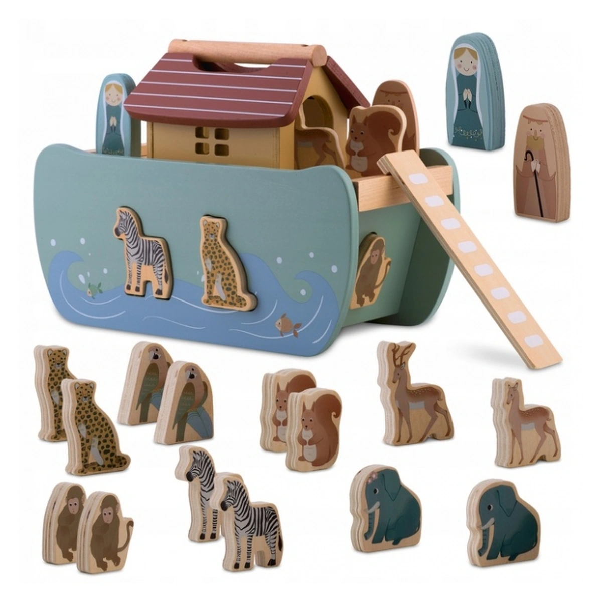 • Dezvoltarea abilitatilor motorii: echipata cu un set de animalute din lemn, Arca lui Noe incurajeaza joaca si explorarea, dezvoltand abilitatile motorii fine ale copilului.